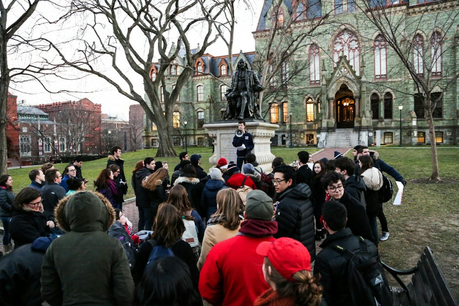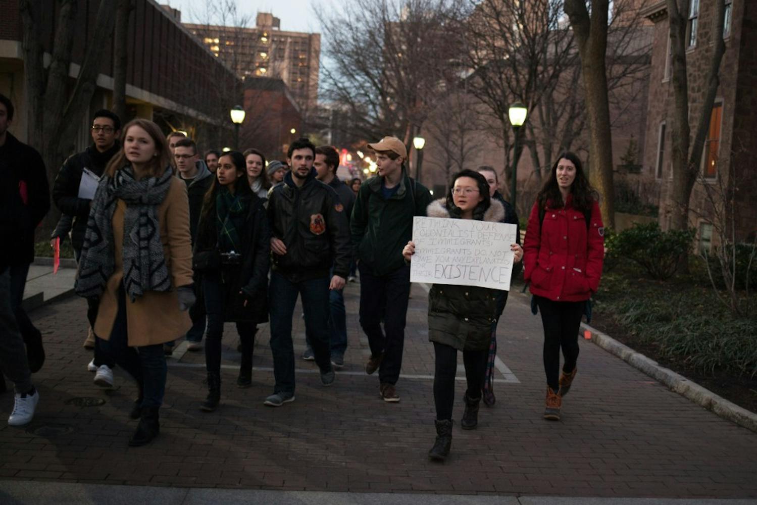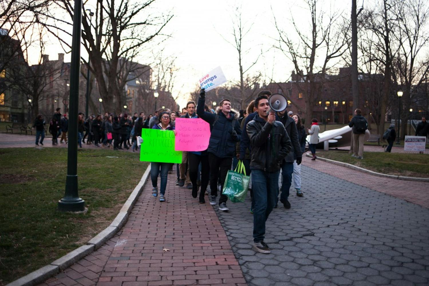 Last Thursday evening, a stream of Penn students marched down Walnut Street chanting “No hate, no fear, immigrants are welcome here.”