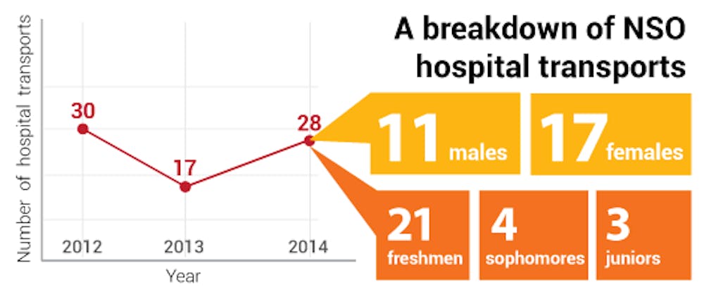 This year’s New Student Orientation saw a 65-percent increase in hospital transports compared to last year's NSO, according to the Division of Public Safety.