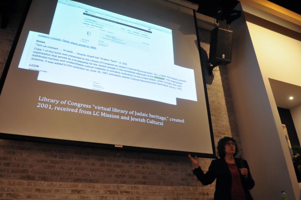 The majority of her talk revolved around the fates of the books after 1945. During her presentation, Peiss explained that the stolen books wound up in the hands of a variety of owners after the war, ranging from some at Yale University to others in the former USSR, often falling out of the public eye for decades.