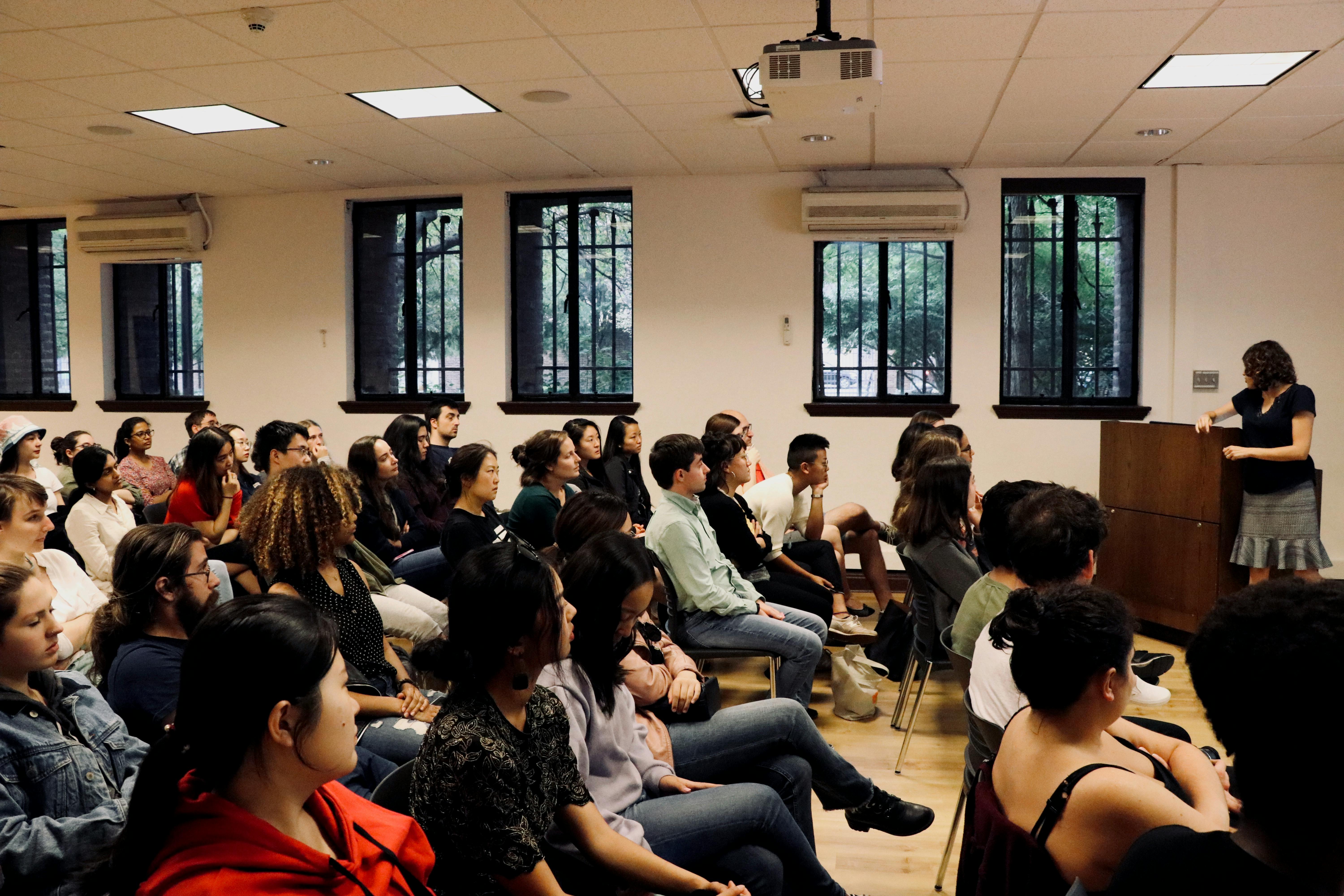 Museum curator and Anthropology professor Lauren Ristvet spoke for half an hour on the importance of smell in various cultures, giving examples of how scents are viewed differently in various cultural contexts. In ancient Rome, for instance, perfume was worn widely by both men and women, while in 19th century Britain the "Great Stink" brought Parliament to a standstill and encouraged the construction of an underground sewage system.