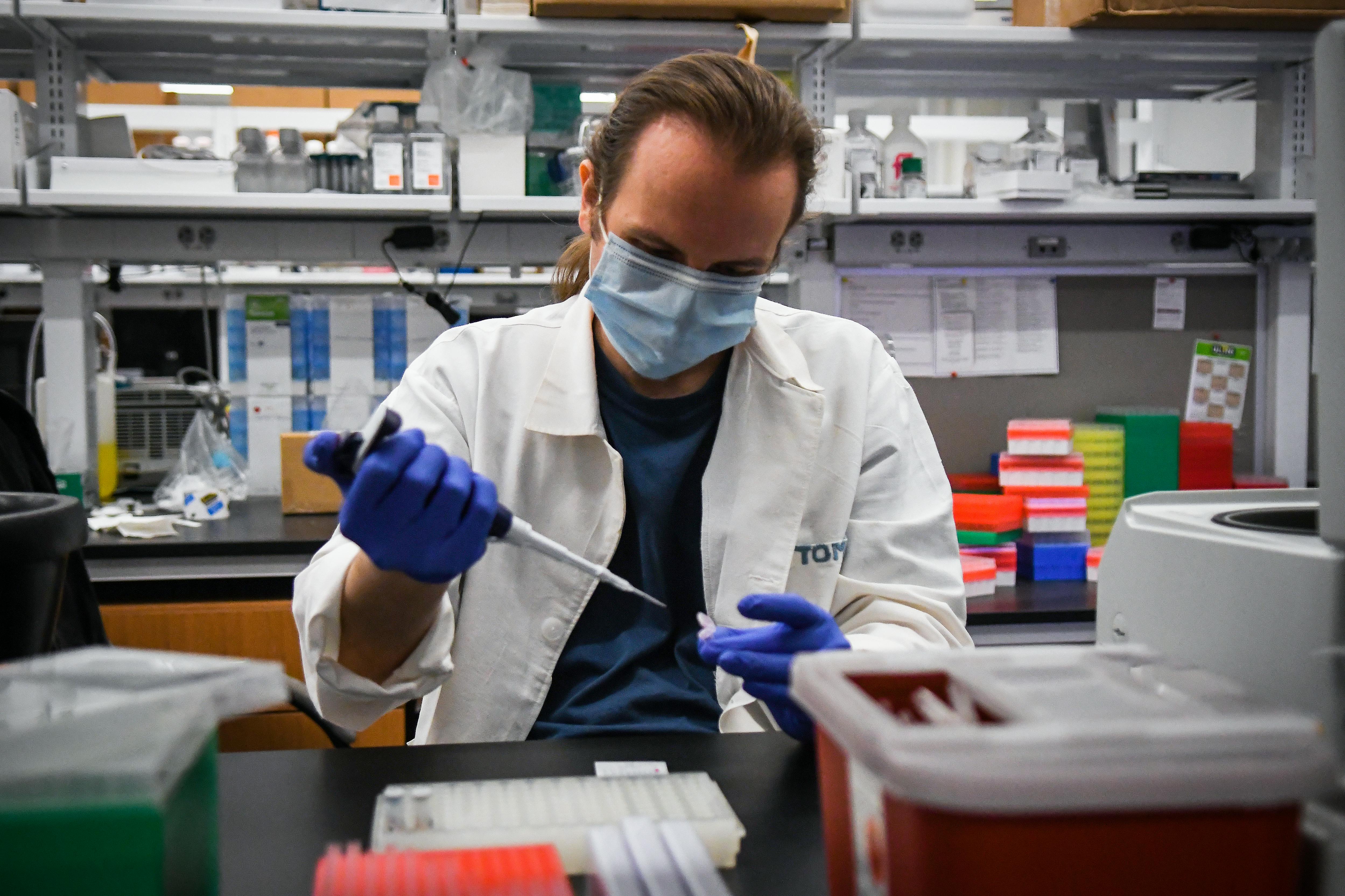 Dec. 8: Pfizer and BioNTech's COVID-19 vaccine was first administered in the United Kingdom. Pictured above, István Tombácz, a Penn Medicine researcher from Drew Weissman's laboratory, prepared his samples for a gel electrophoresis. Weissman's mRNA technology provided the basis for the vaccine.