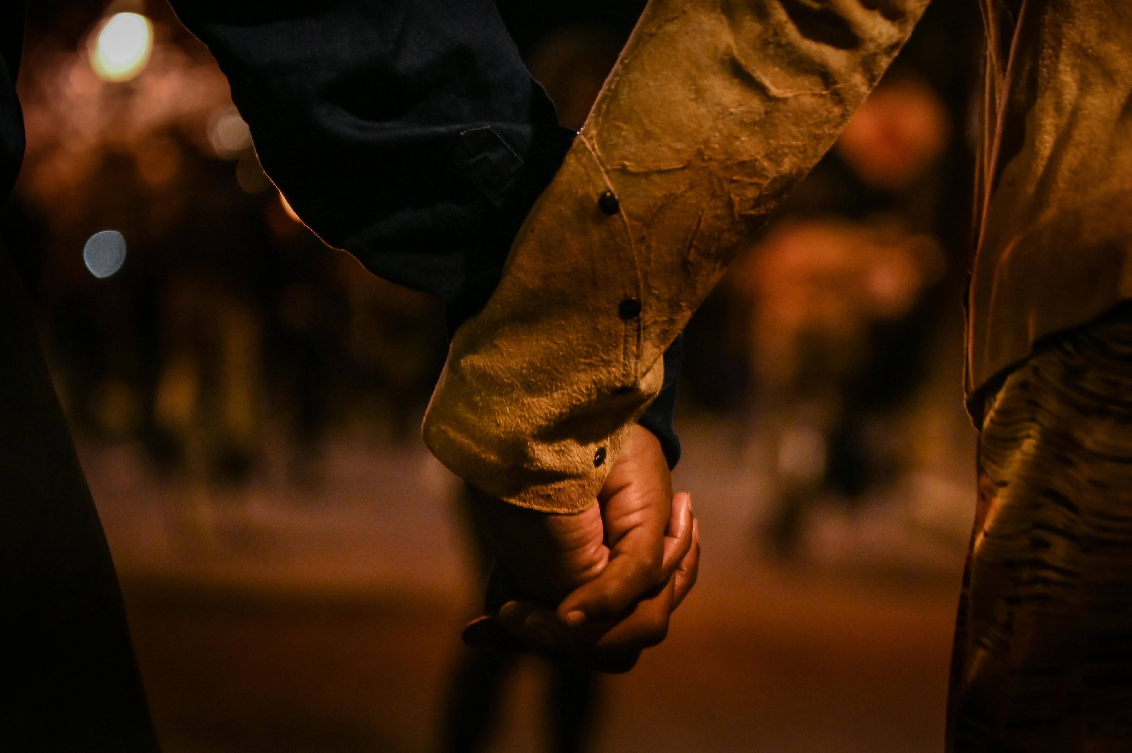 Kendall Stephens and Marcha Pisces, a Philadelphia drag performer and LGBTQ rights activist, held hands as they led the protest. The march came to a close at City Hall at 10:30 p.m.