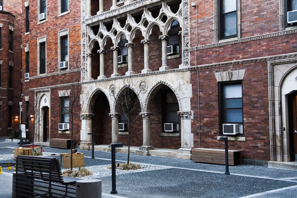 The Hamilton Court apartment buildings were originally built as an upscale hotel in the early 20th century. Post Brothers, known for buying inexpensive real estate and bringing it upmarket, made various changes to the complex as part of their $21 million capital improvement plan, building the amenity and retail space in the courtyard. Monthly rent for units currently range from $1,099-$2,045, as listed on Apartments.com.