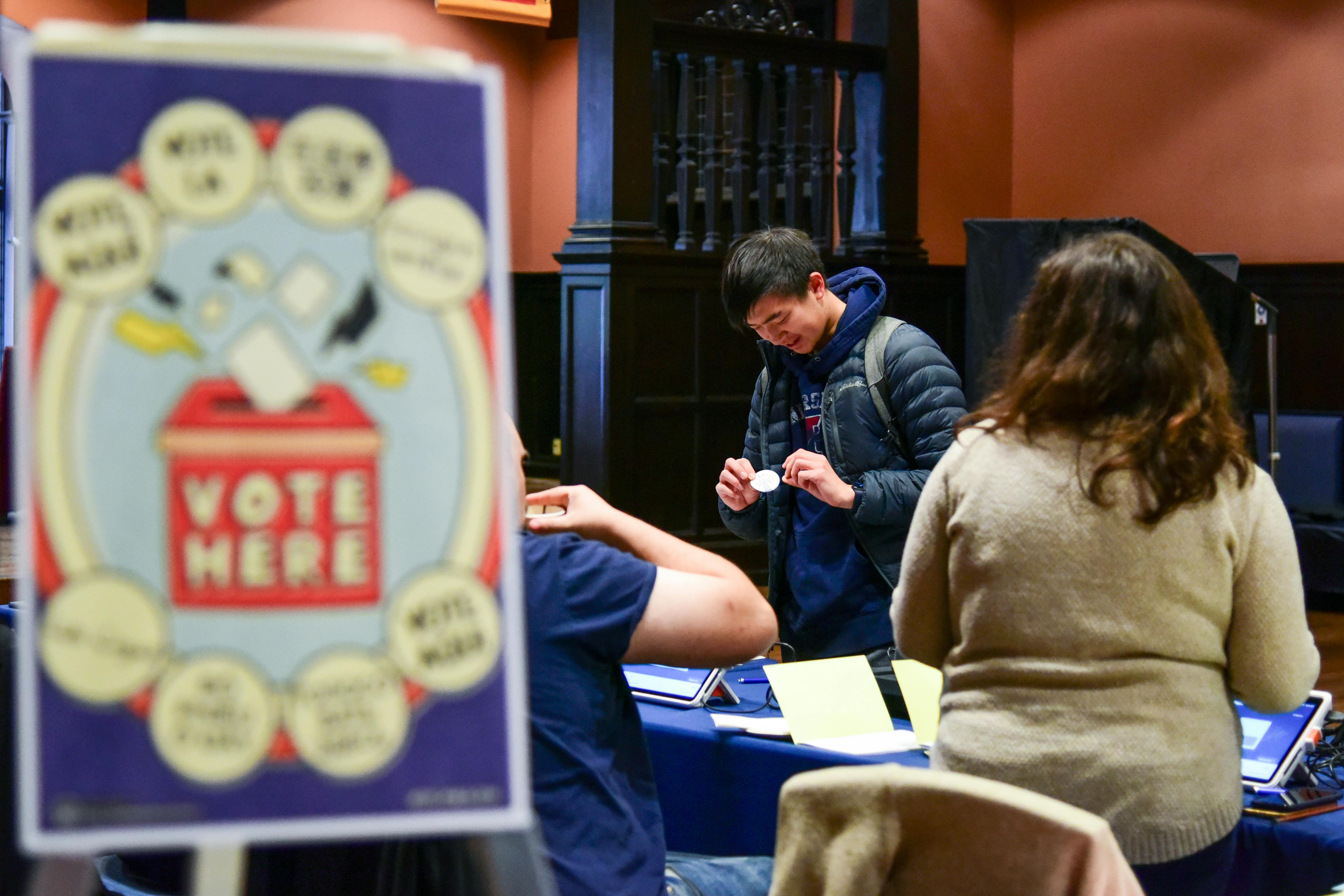 Students lined up to check in with poll workers before heading to the voting booths.