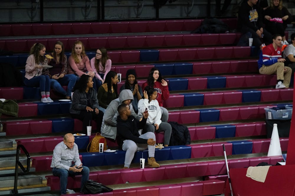 But with the action just minutes away, the student section is so empty that there is still time to snag a coveted courtside seat. While there are currently more student-athletes warming up on the basketball court than there are students in the stands, the general attendance sections are beginning to fill up.