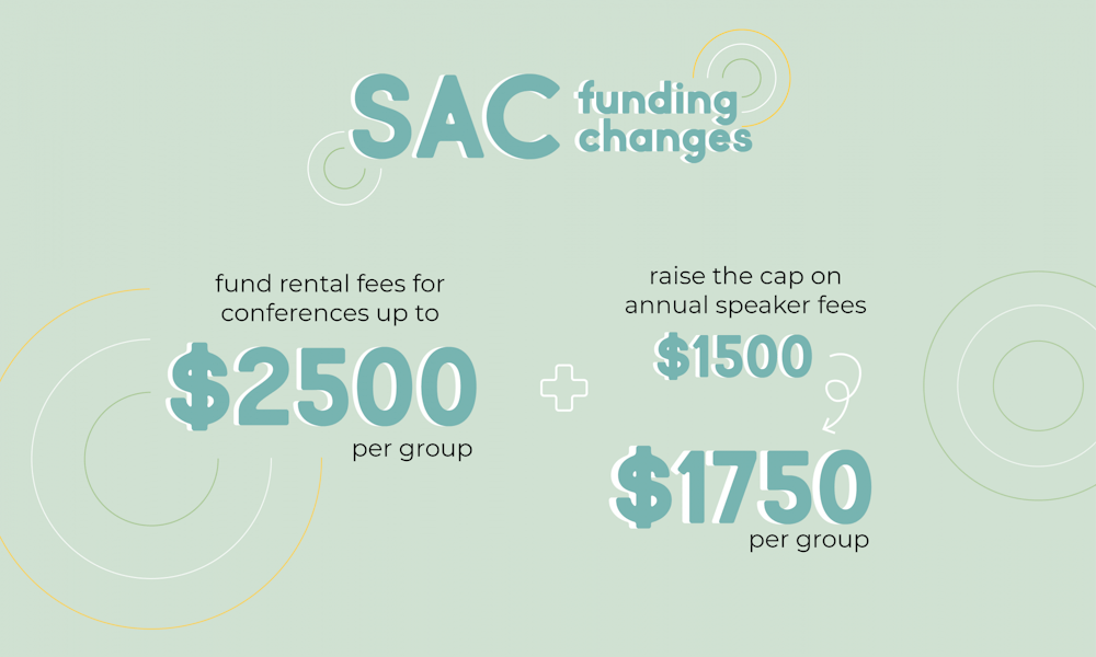 Former SAC Vice President and College senior Elena Hoffman said that SAC will fund space rental fees for conferences up to $2,500 per group for the 2020-2021 academic year. Hoffman added that SAC will also raise the cap on annual speaker fees from $1,500 to $1,750 per group.