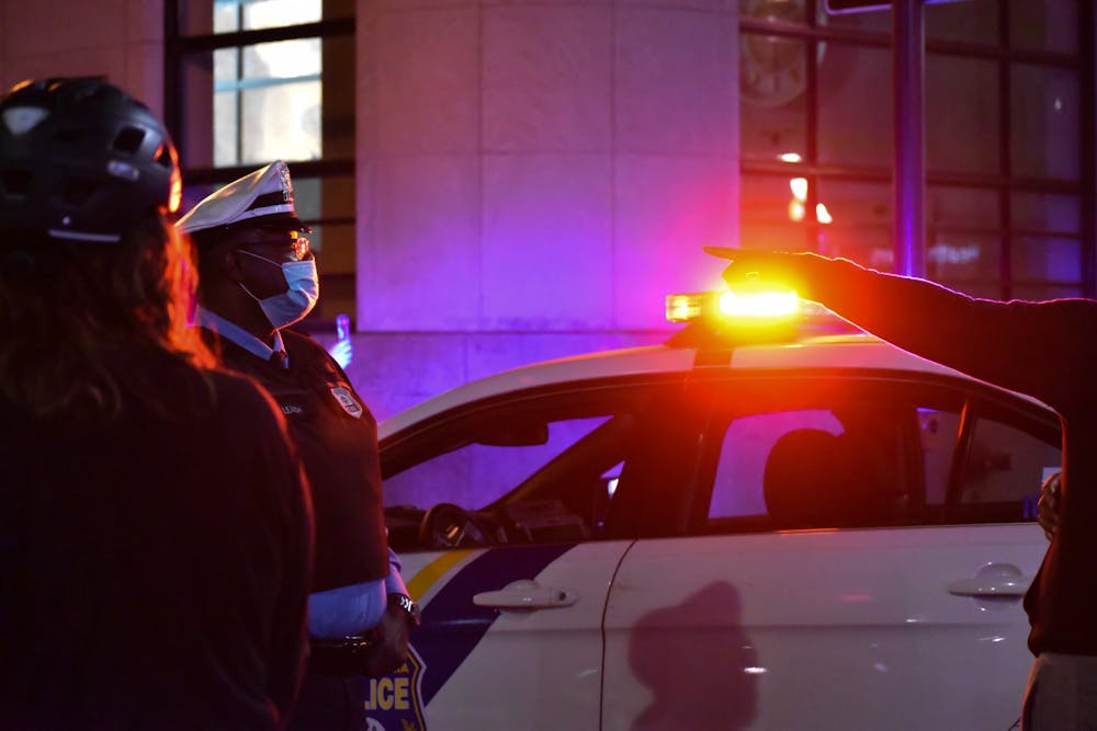 Police car lights illuminated the night as the march continued into South Philadelphia.