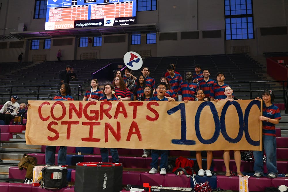 But it was Almqvist’s night, with the Penn Band coming out with a banner that read, “Congrats Stina 1000.” The team huddled in front of the banner and called Almqvist to come over.
