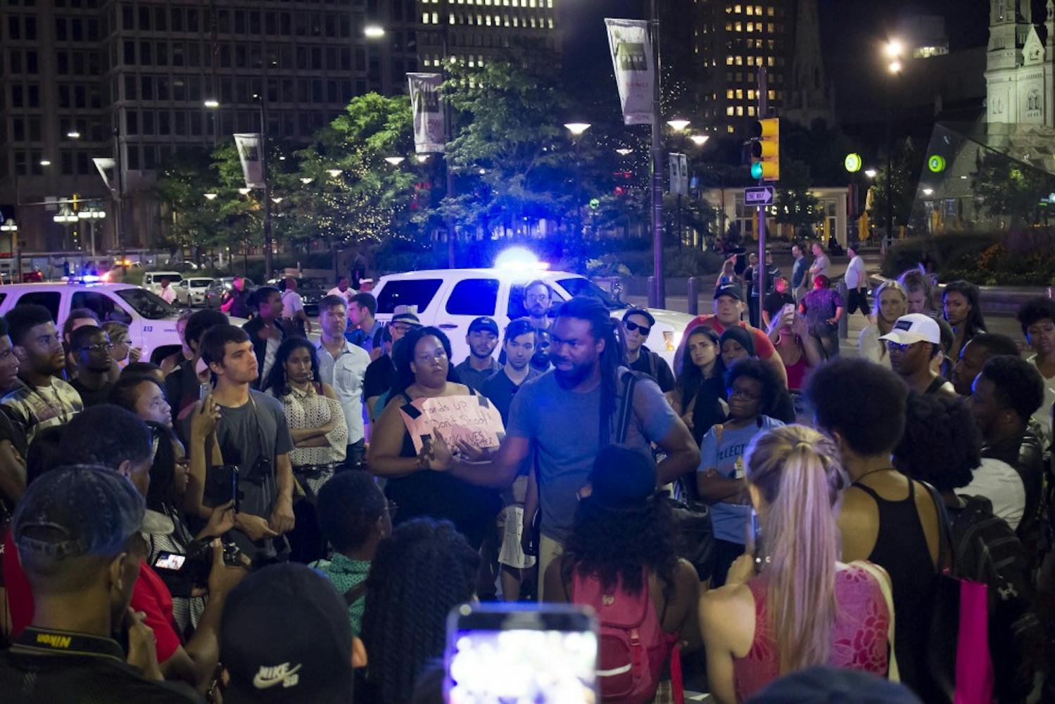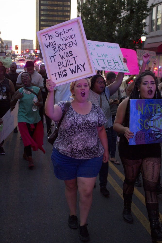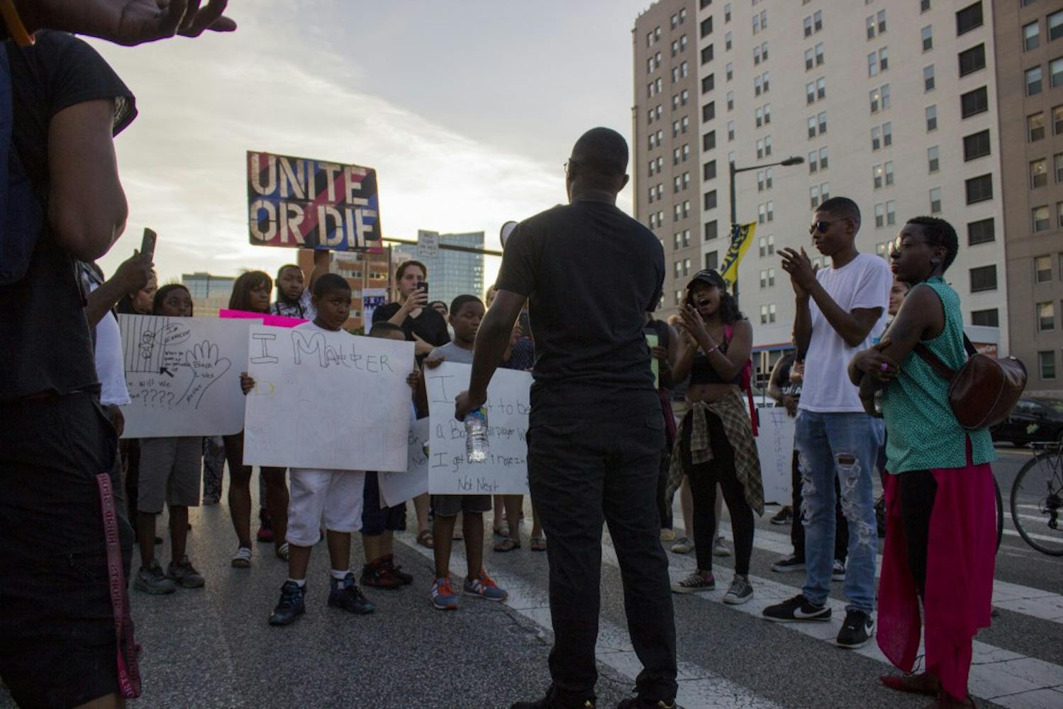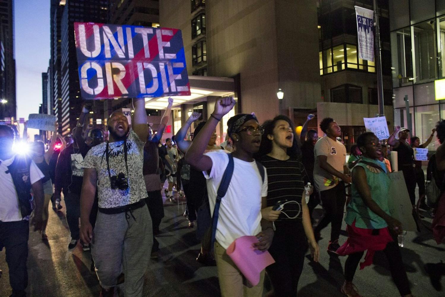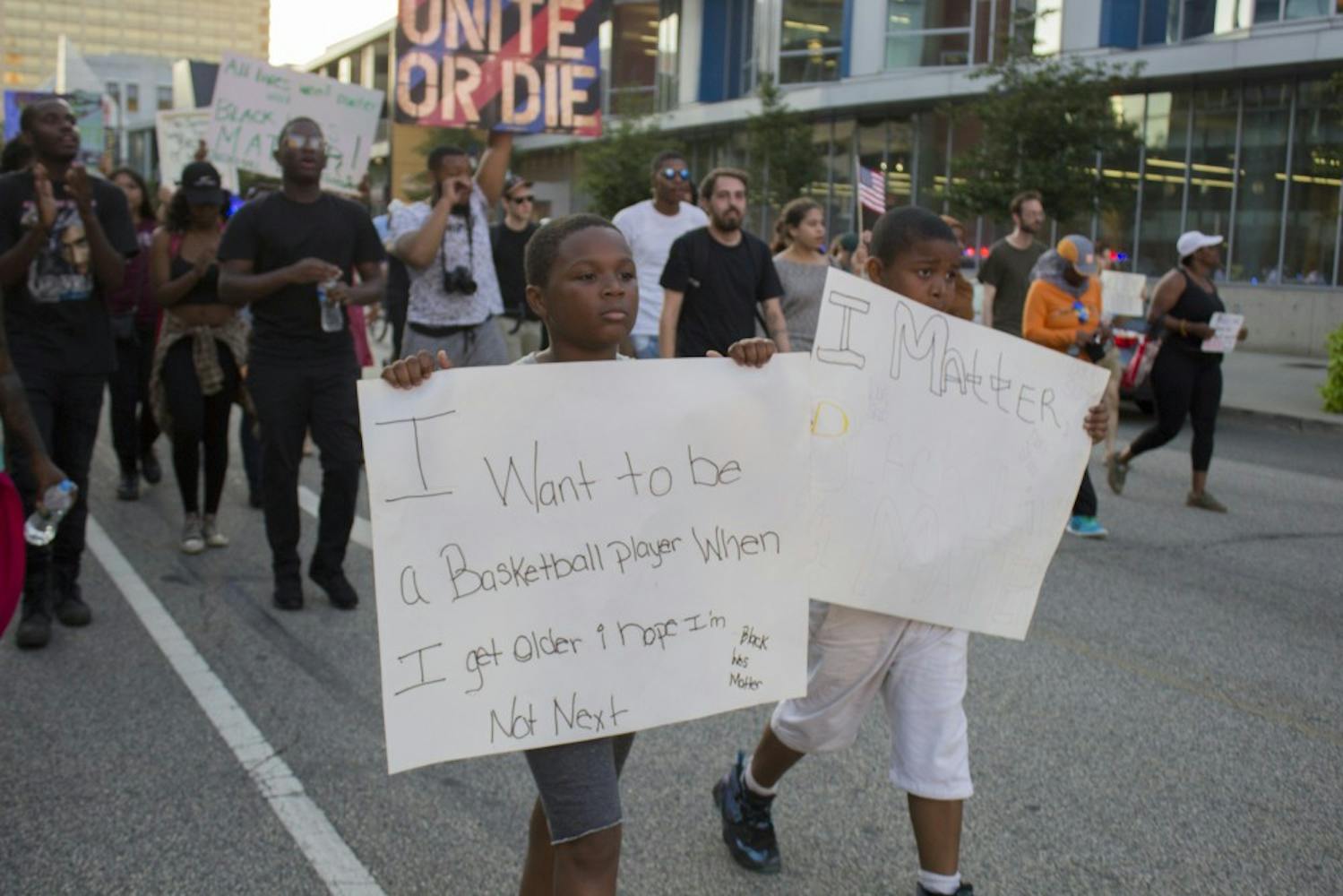Black Lives Matter protesters marched past Penn's campus on Market Street around 8 p.m. on Sunday. They held signs and chanted, "Show me what democracy looks like, this is what democracy looks like," and "What do we want? Justice. If we don't get it? Shut it down." The march progressed to City Hall, with intermittent stops to allow individuals to speak about their experiences with racism and share ideas to enact tangible change. At City Hall, the largest group of people gathered to chant and share ideas and experiences, and then the march continued past it.