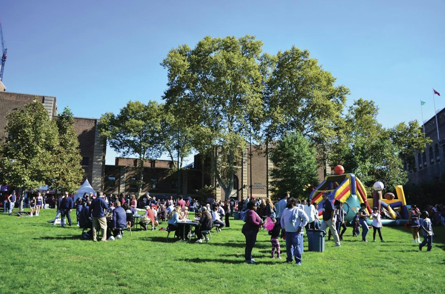 Students and parents alike flocked to Shoemaker Green Saturday afternoon to take part in Fan Fest, a pregame event prior to the Penn-Columbia game. The event, hosted by the DP, the Red and Blue Crew, and the Class Boards, featured a deejay, an inflatable rock climbing area, and performances by the Penn Band and cheerleaders. Penn proceeded to win the Family Weekend game 35-10. For more photos, visit our Facebook album.