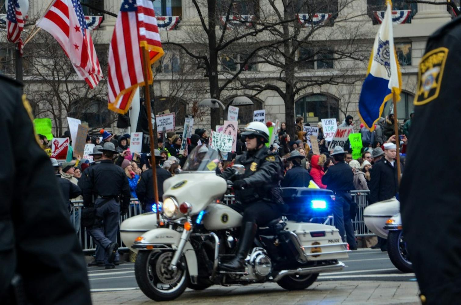 1968 Wharton graduate and President Donald Trump and Vice President Mike Pence paraded around Washington D.C. in the afternoon following their inauguration. Spectators of the event included both pro-Trump supporters, who excitedly cheered on the new president when he passed, and anti-Trump protesters, who collectively booed him.