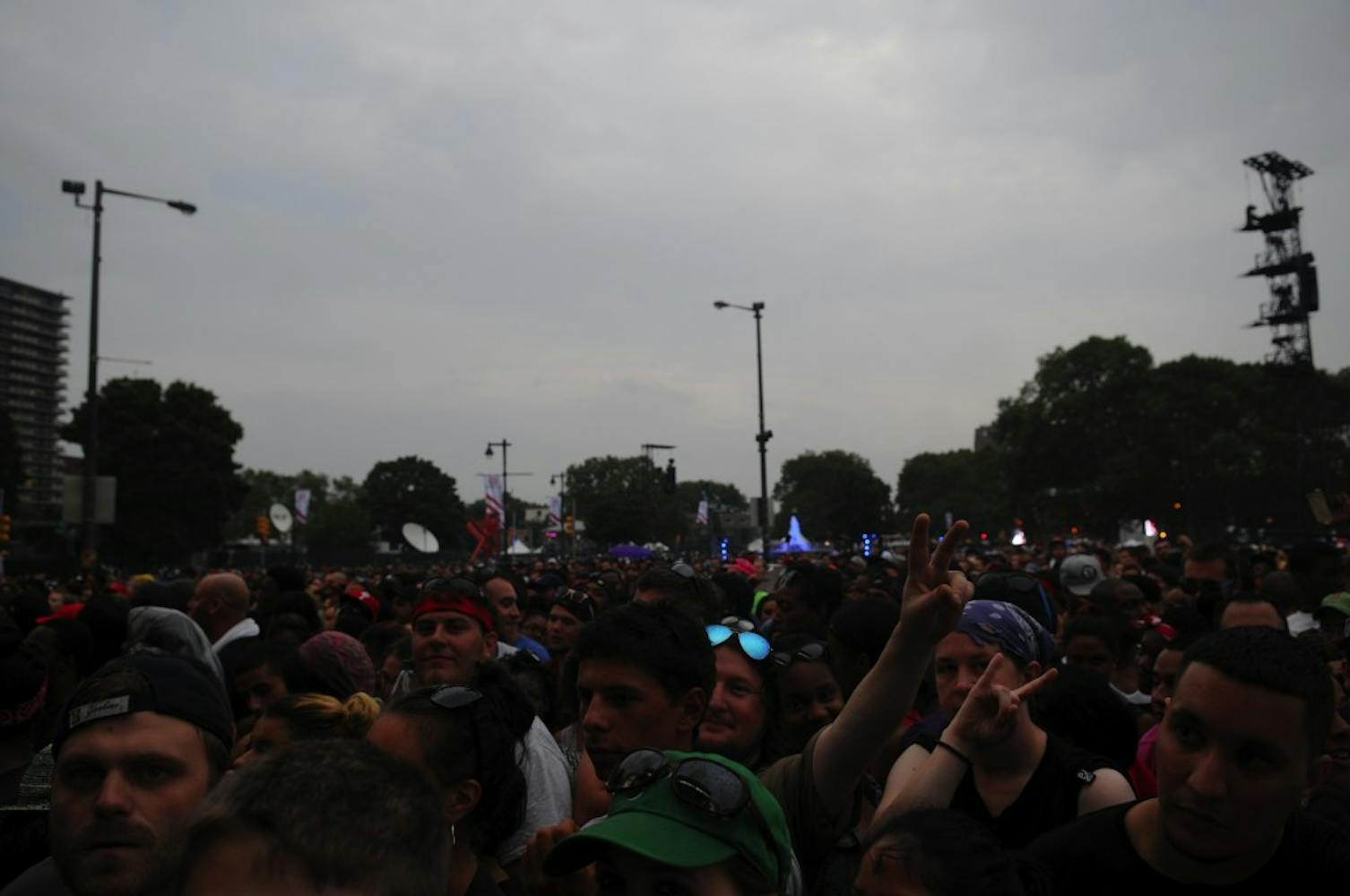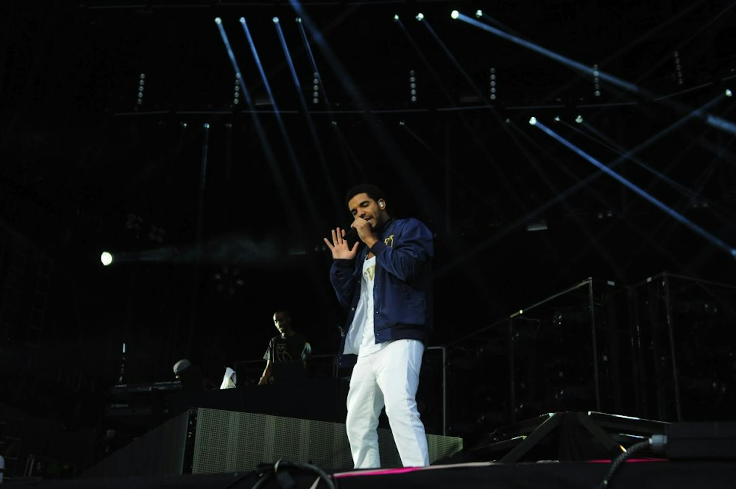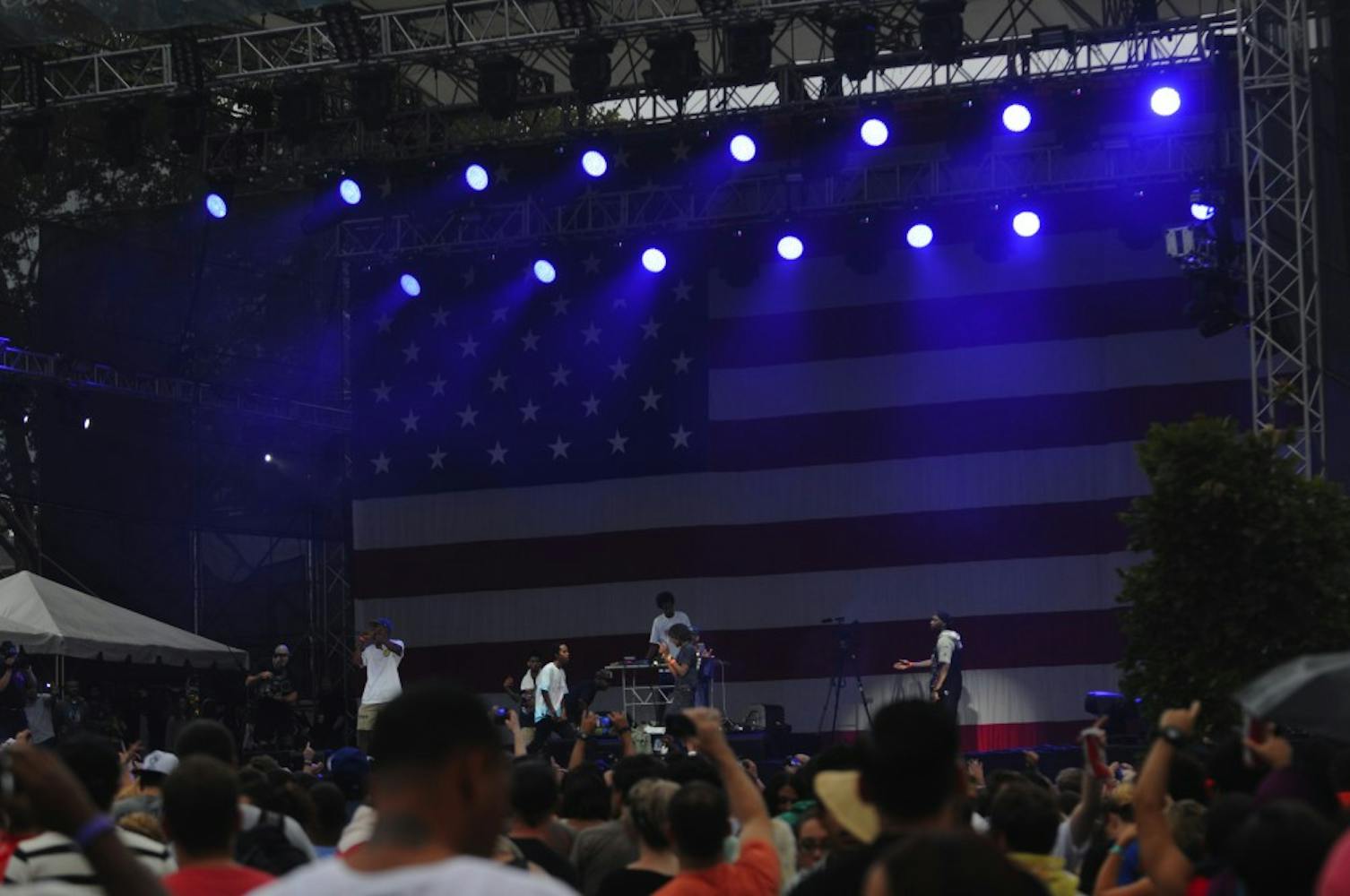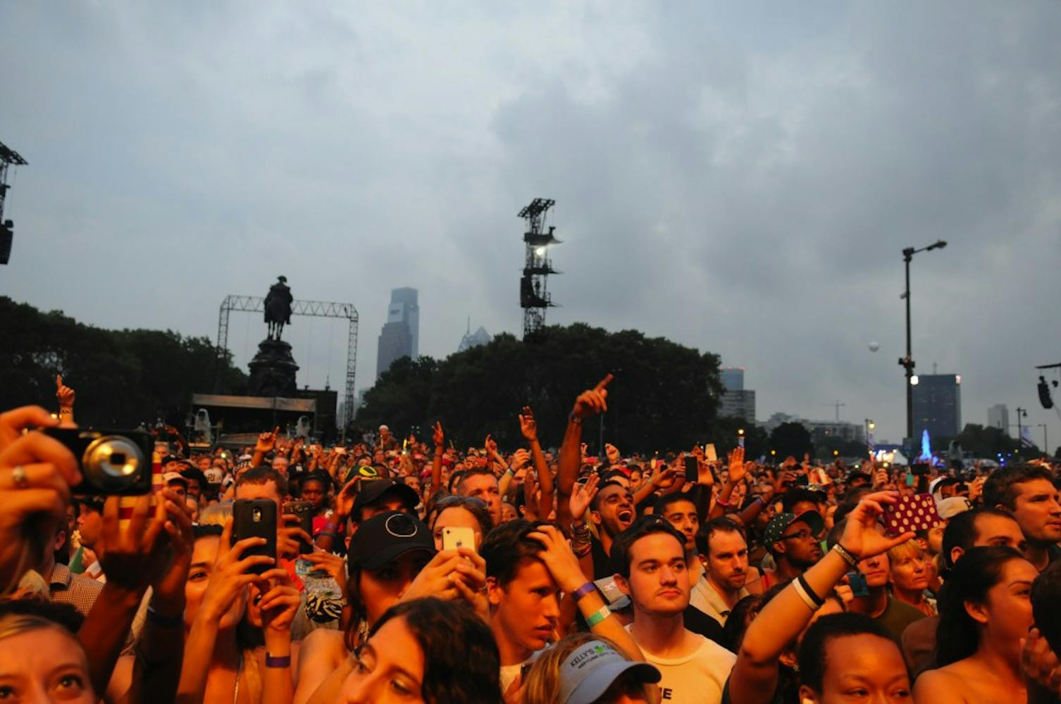 Jay-Z and Drake perform their sets on stage and concertgoers watch on at one of the three stages set up at this weekend’s Made in America Festival. This was the first time the Benjamin Franklin Parkway hosted a ticketed event. More than 80,000 people attended. >> Read more on page 7.