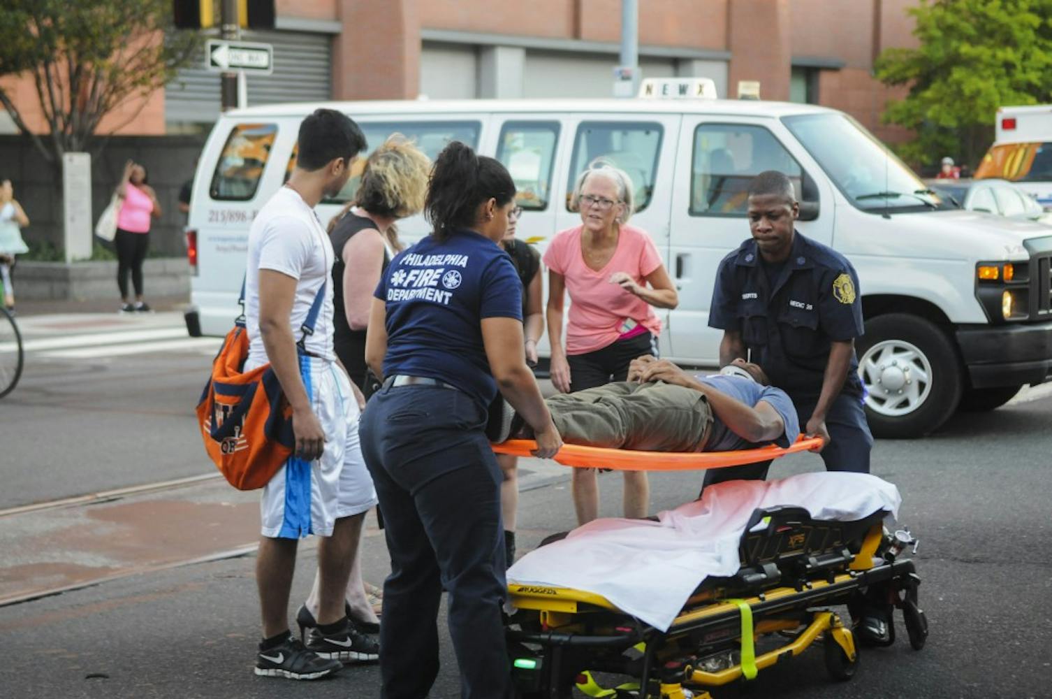 Photo gallery: man hit by car on 38th and Walnut, taken to hospital