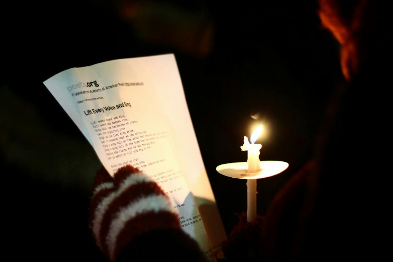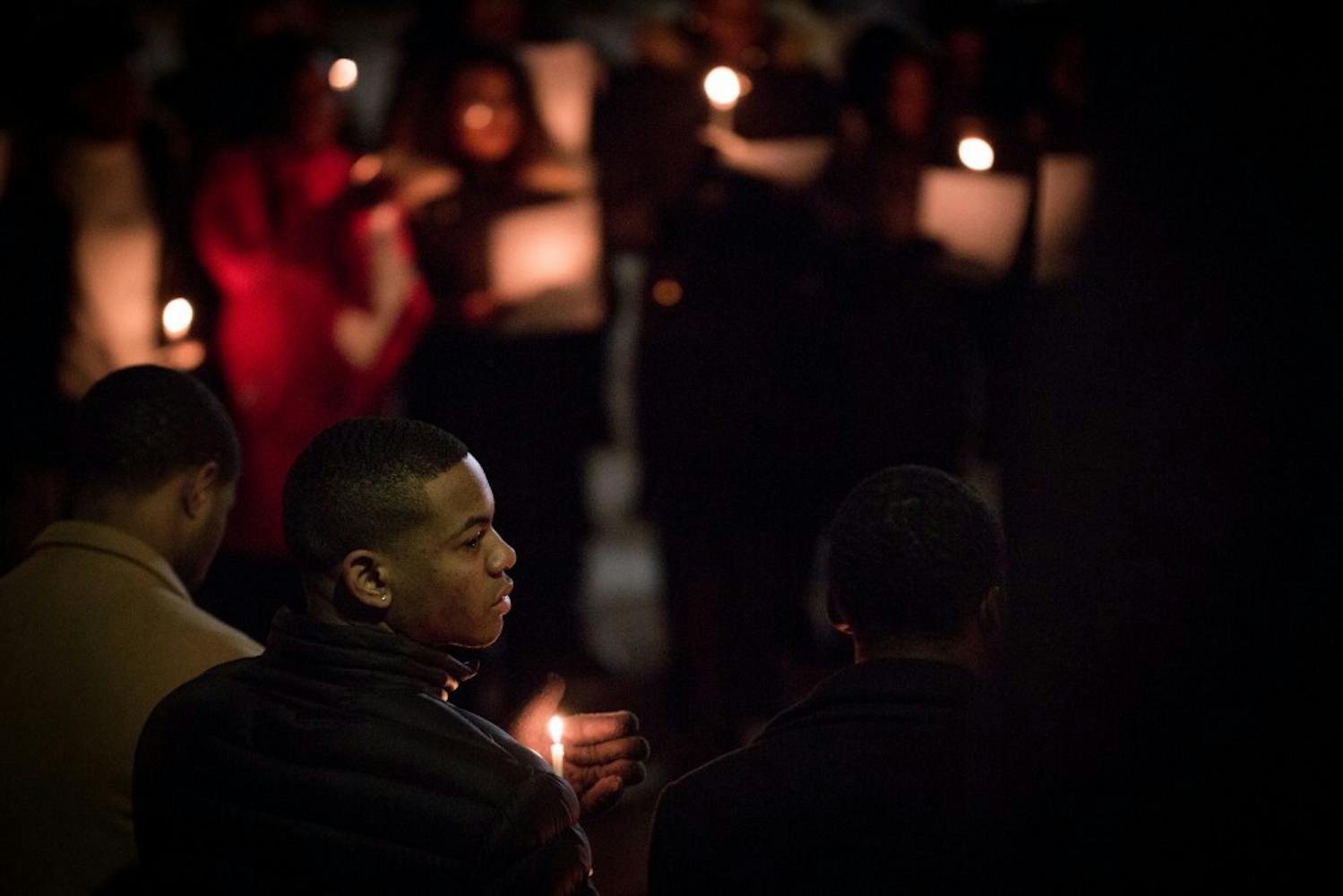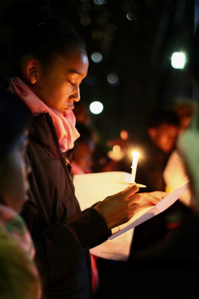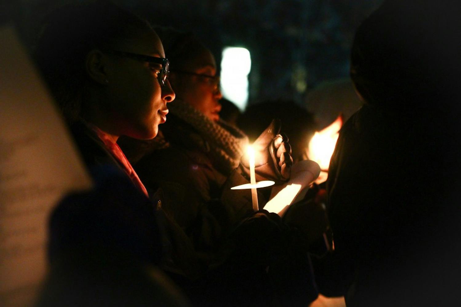 To cap off a day of service in honor of Martin Luther King Jr., residents of W.E.B. Du Bois College House and members of the community at large precessed in silence from Du Bois to the compass, where they held a candlelight vigil organized by the Alpha Kappa Alpha sorority and Alpha Phi Alpha fraternity. Following the lighting of the candles, the congregation sang "Lift Every Voice and Sing," held a prayer, and returned to Du Bois, where commemorations continued until 10 p.m. (Photos by Julio Sosa and Lulu Wang)