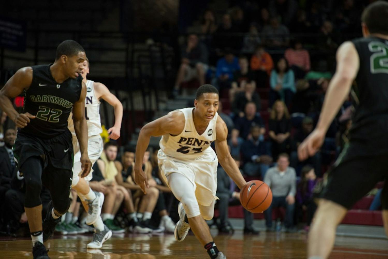 Penn men's basketball suffered a rough loss to Dartmouth 76-74 on Friday, but came back strong against Harvard the following night, surging to a 75-72 victory over the Crimson to carry them into the Ivy Tournament next weekend as the 4-seed.