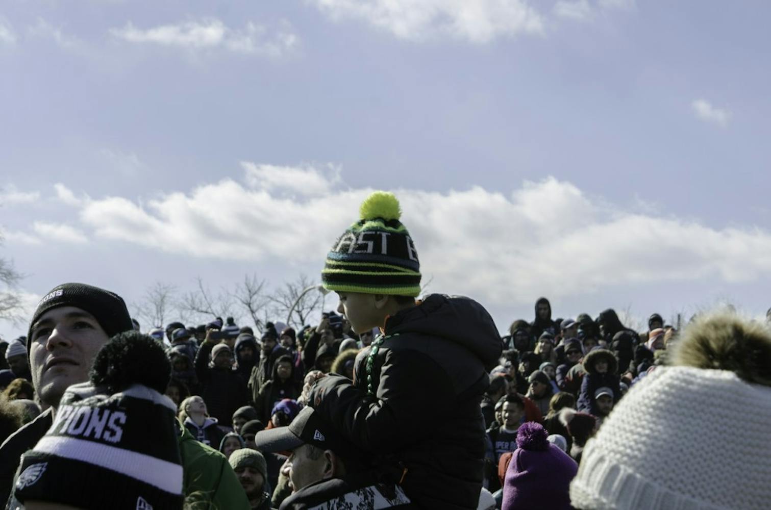 Millions of people attended the victory parade for the Philadelphia Eagles on Thursday. Every one of them withstood sub-freezing temperatures, wind chills, and congested trains just for a chance to catch a glimpse of their athletic heroes. We went out to take their portraits, listen to their stories, and learn why Philadelphia is known for having "the greatest fans in the world." Photos by Chase Sutton, Joy Lee, Giovanna Paz, Lucia Huo, and Biruk Tibebe.