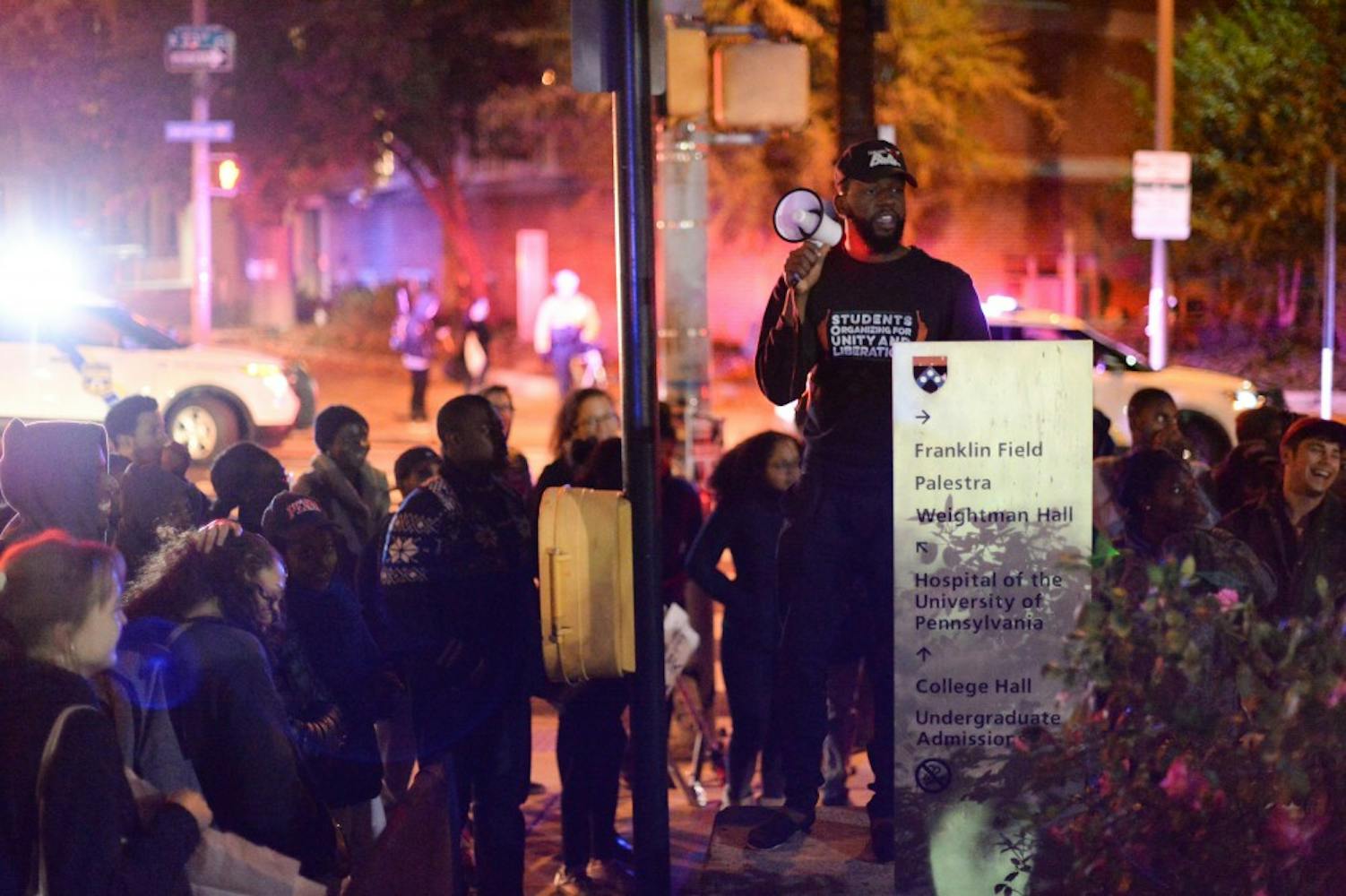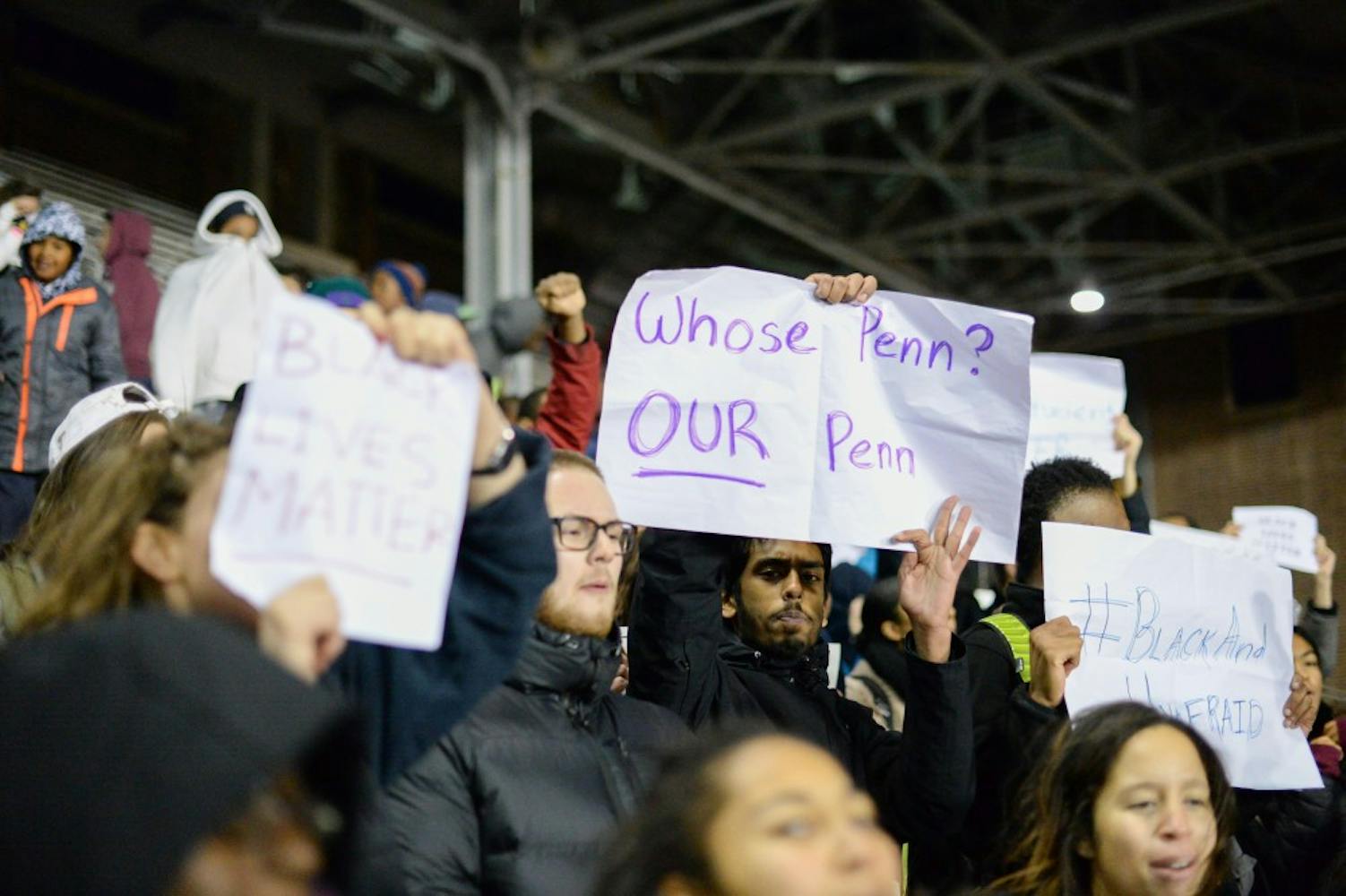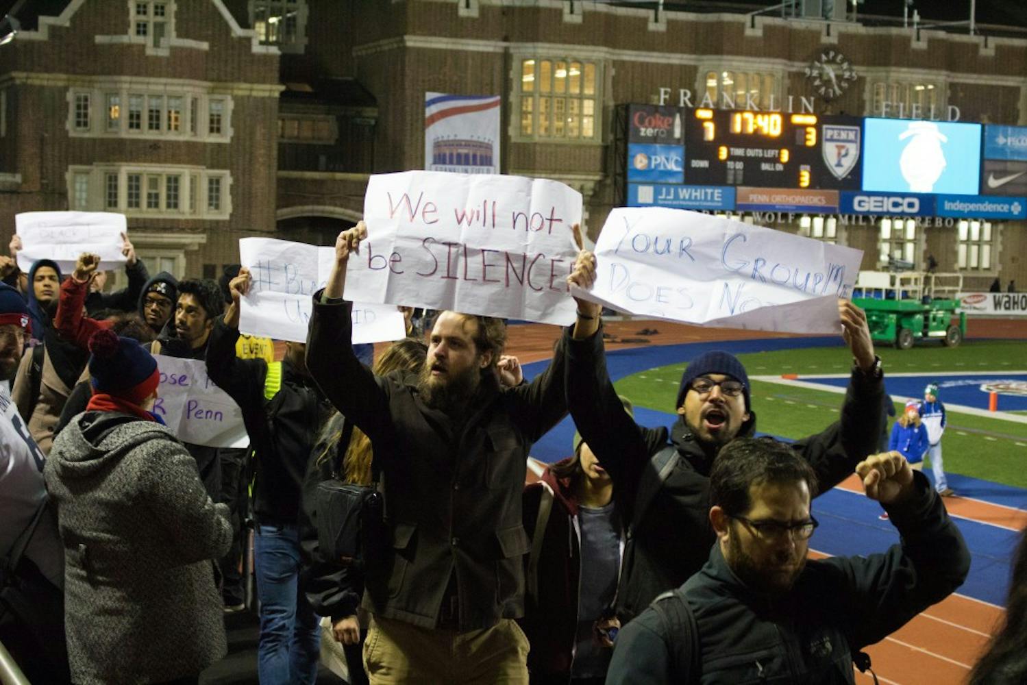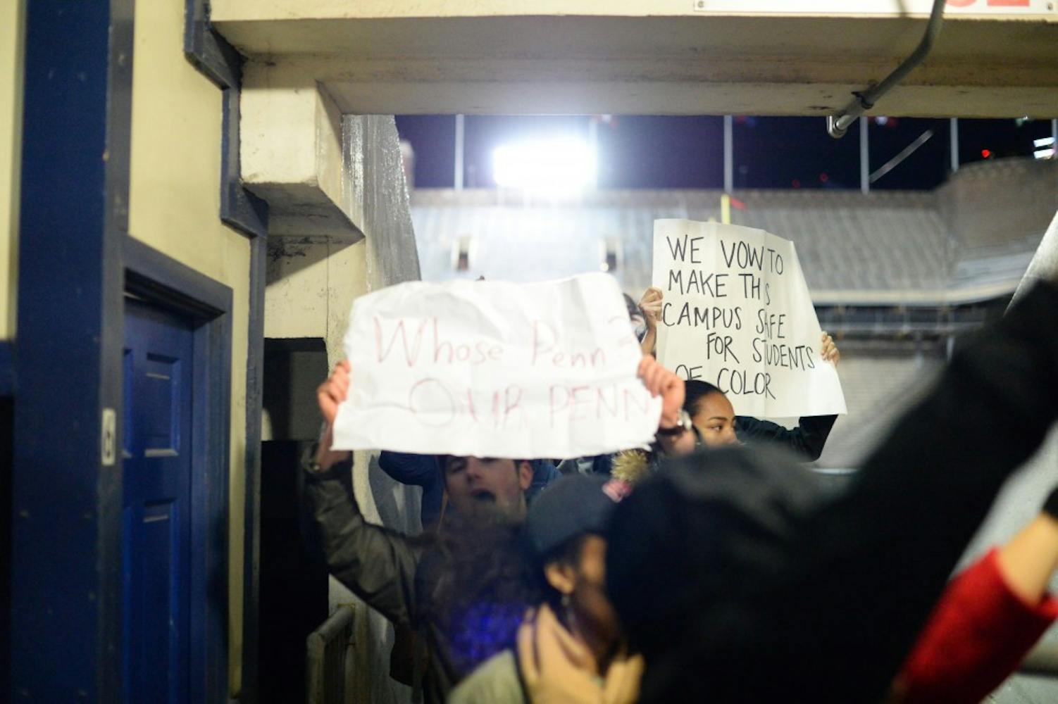 On Friday night, protestors marched to the walls of Franklin Field in response to racist messages targeting freshmen. Their goal was to reach the field, where Penn was playing Harvard in its final home football game of the season, and to "show them black lives matter."