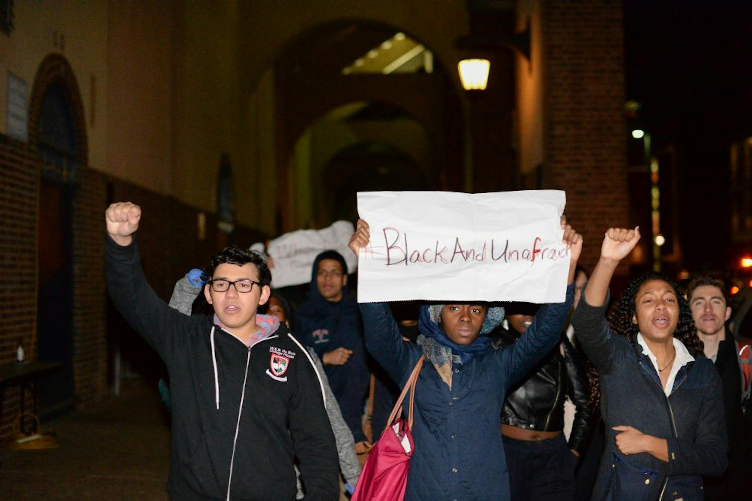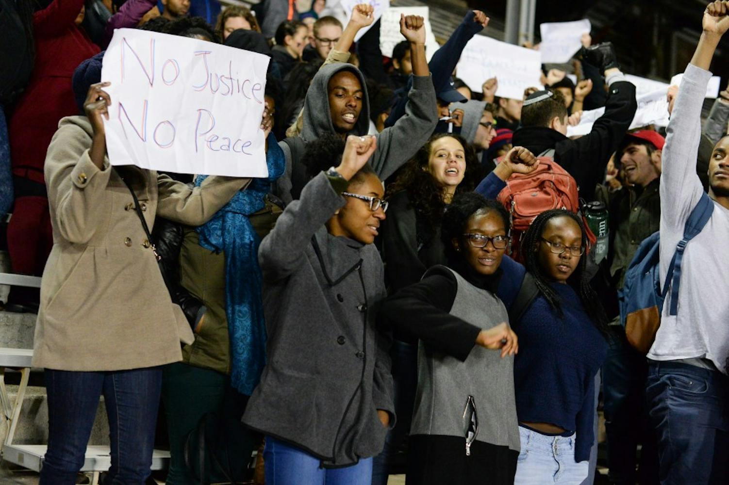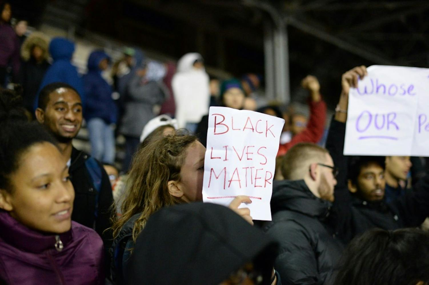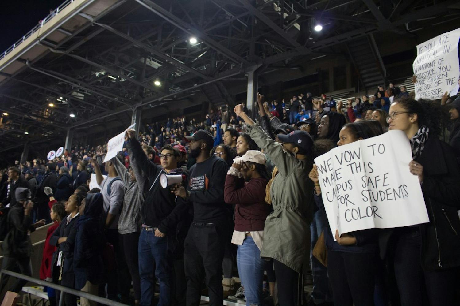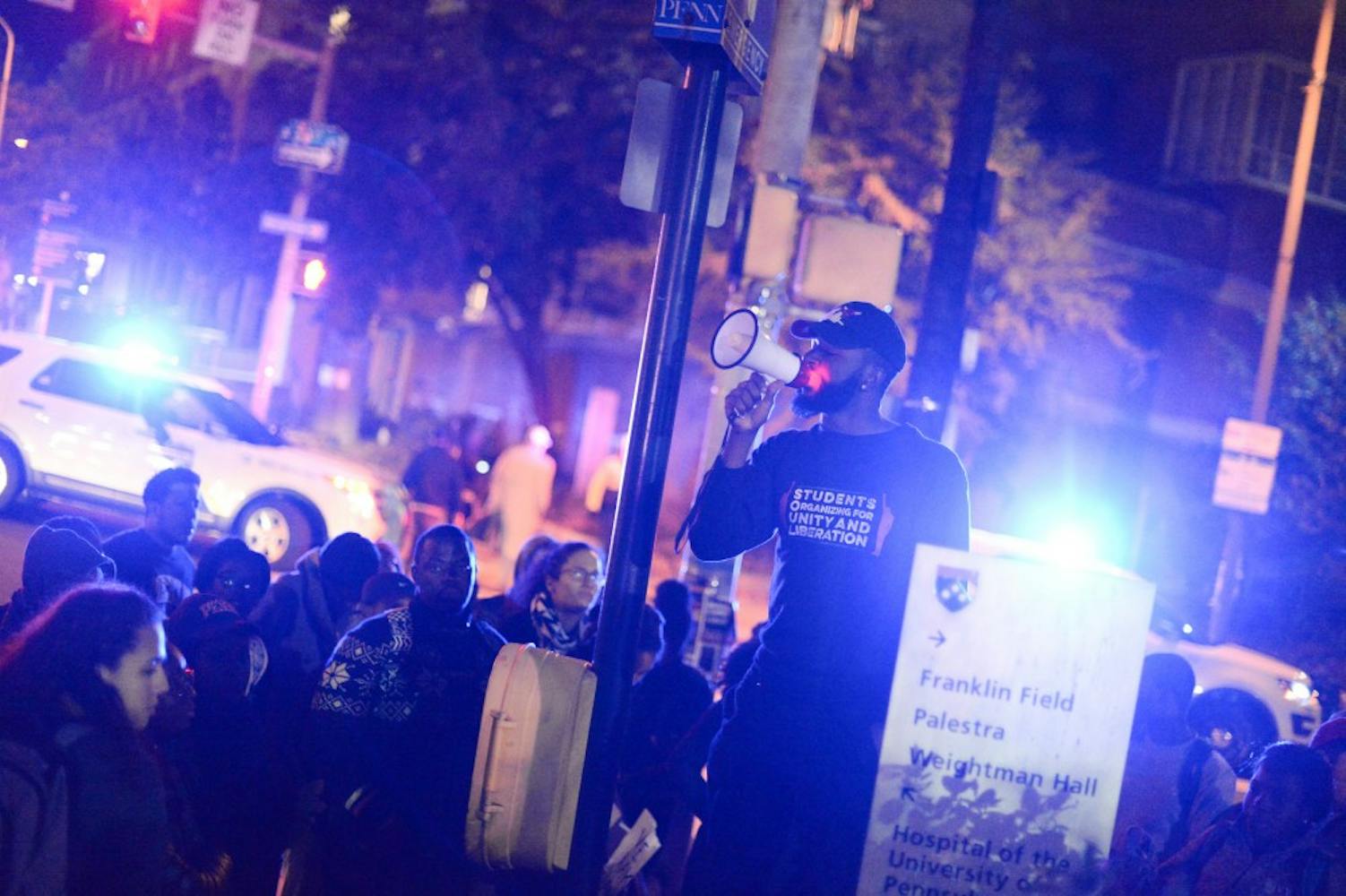 On Friday night, protestors marched to the walls of Franklin Field in response to racist messages targeting freshmen. Their goal was to reach the field, where Penn was playing Harvard in its final home football game of the season, and to "show them black lives matter."