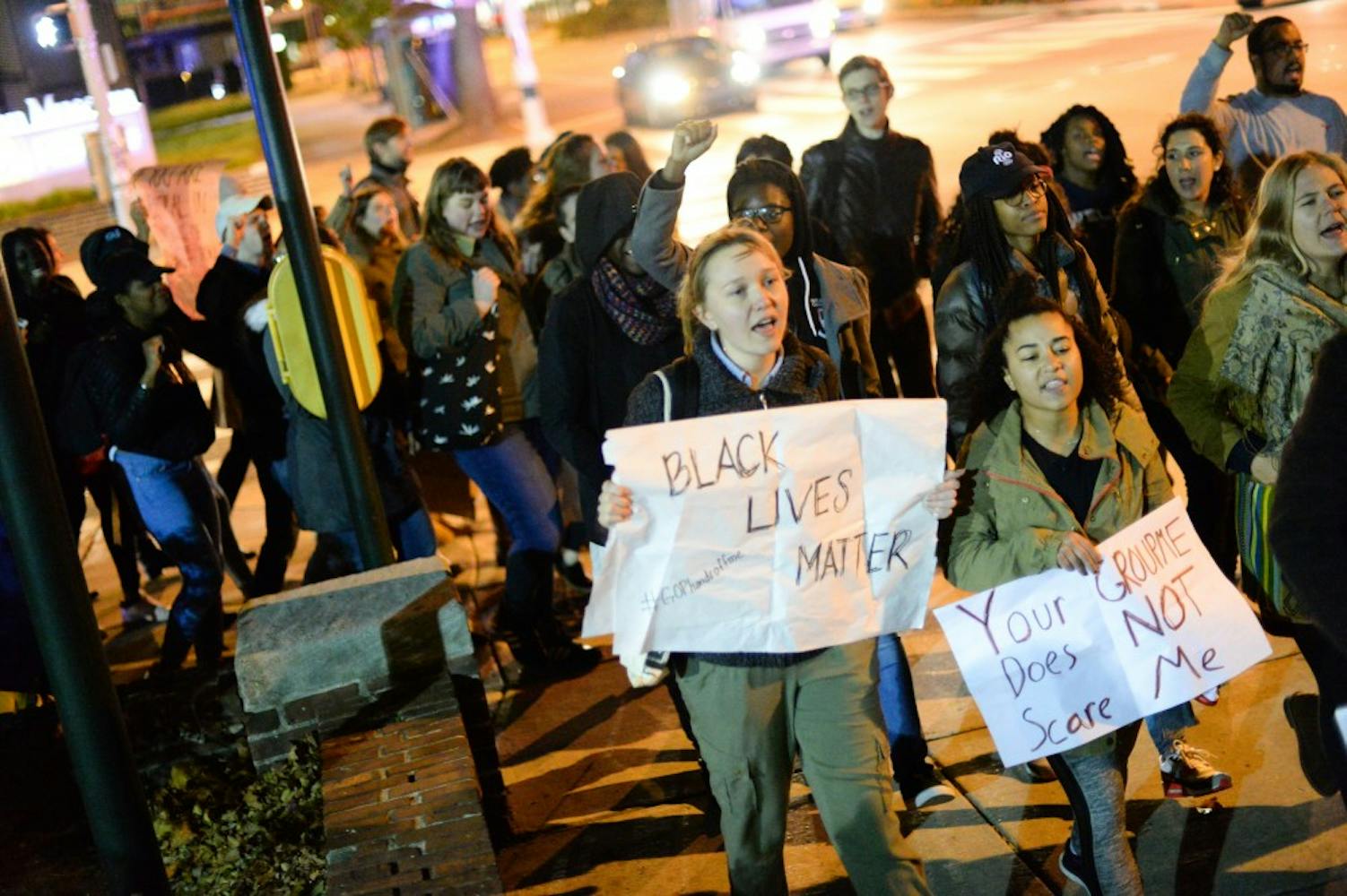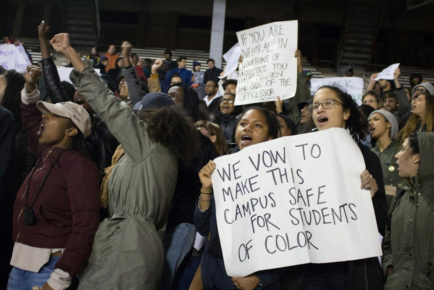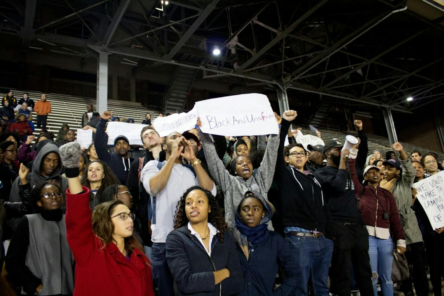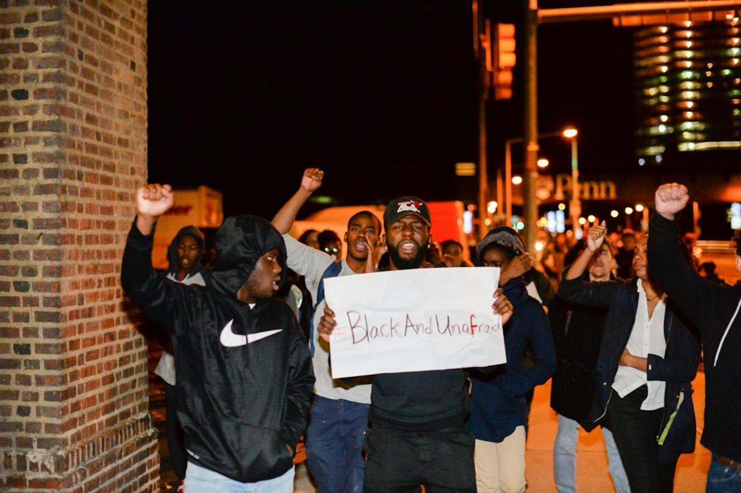 On Friday night, protestors marched to the walls of Franklin Field in response to racist messages targeting freshmen. Their goal was to reach the field, where Penn was playing Harvard in its final home football game of the season, and to "show them black lives matter."