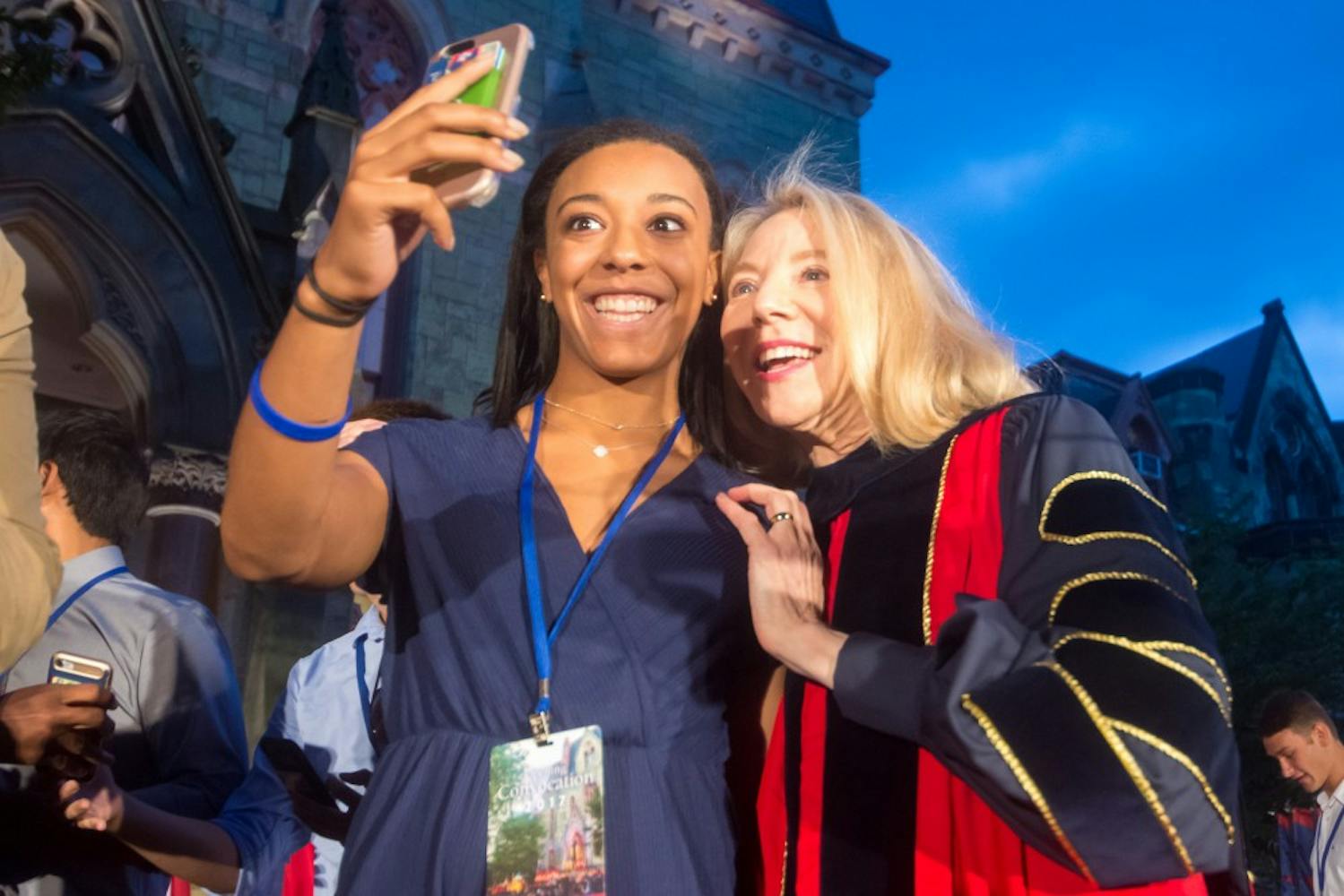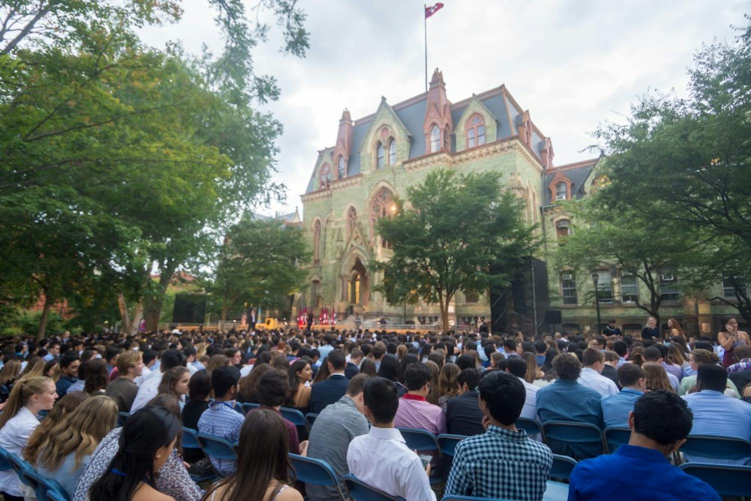 Monday night, the class of 2021 gathered on College Green for Convocation. President Amy Gutmann, along with others, officially welcomed the new freshmen class to Penn. Daniel Xu | Staff Photographer