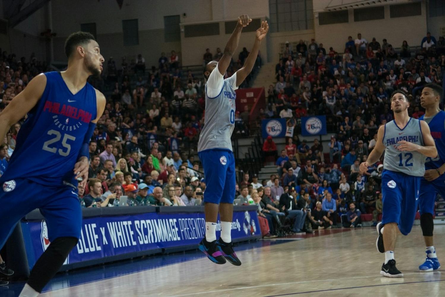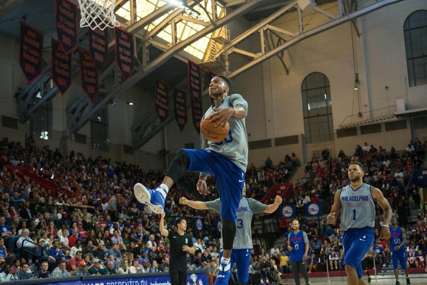 Fans packed the Palestra to watch the 76ers' 2017-2018 squad compete in an intense scrimmage, featuring big names such as Ben Simmons, Markelle Fultz, and JJ Reddick. Zach Sheldon | Sports Photo Editor