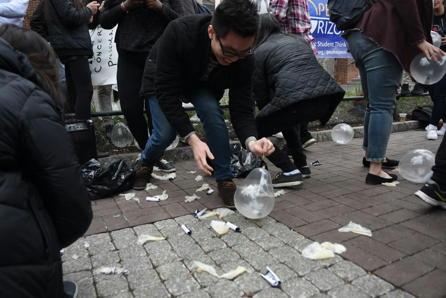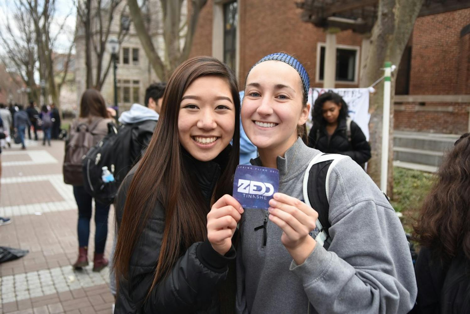 Penn SPEC had their Fling lineup release celebration to celebrate this year's performers: Zedd and Tinashe. Members of SPEC threw balloons in the air on Locust Walk, each with a piece of paper inside, and students rushed to pop the balloons. Two lucky students, Irene Su and Katrina Seykora, were the winners of free fling tickets for this year's concert.