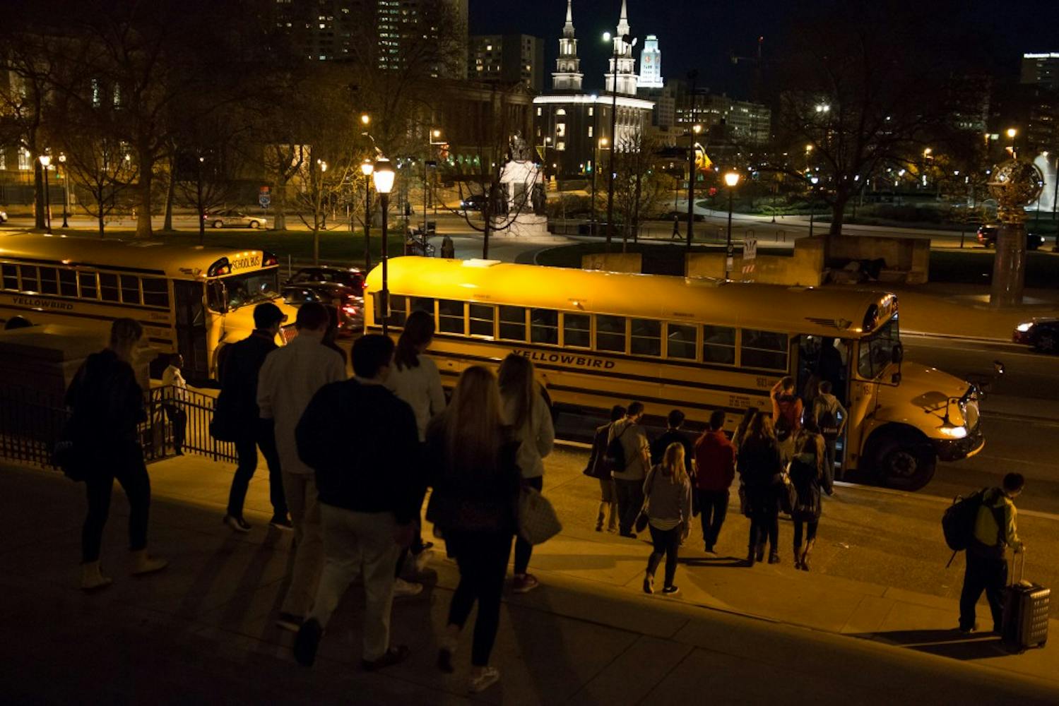 Tuesday afternoon, prospective students visiting for Quaker Days were shuffled onto tour buses destined for Old City. After the prospective students had become acquainted with Philadelphia, the buses turned toward the Franklin Institute— home of the third annual "Last Hurrah," the grand finale of the Quaker Days programming. Franklin Institute, having been transformed with hues of red and blue, was rented out by Penn specifically for the Quaker Days celebration. At the Last Hurrah the prospective students mingled, explored the institute's exhibits, enjoyed Dean Furda's shenanigans, and danced the night away. (Photos by Julio Sosa | News Photo Editor)