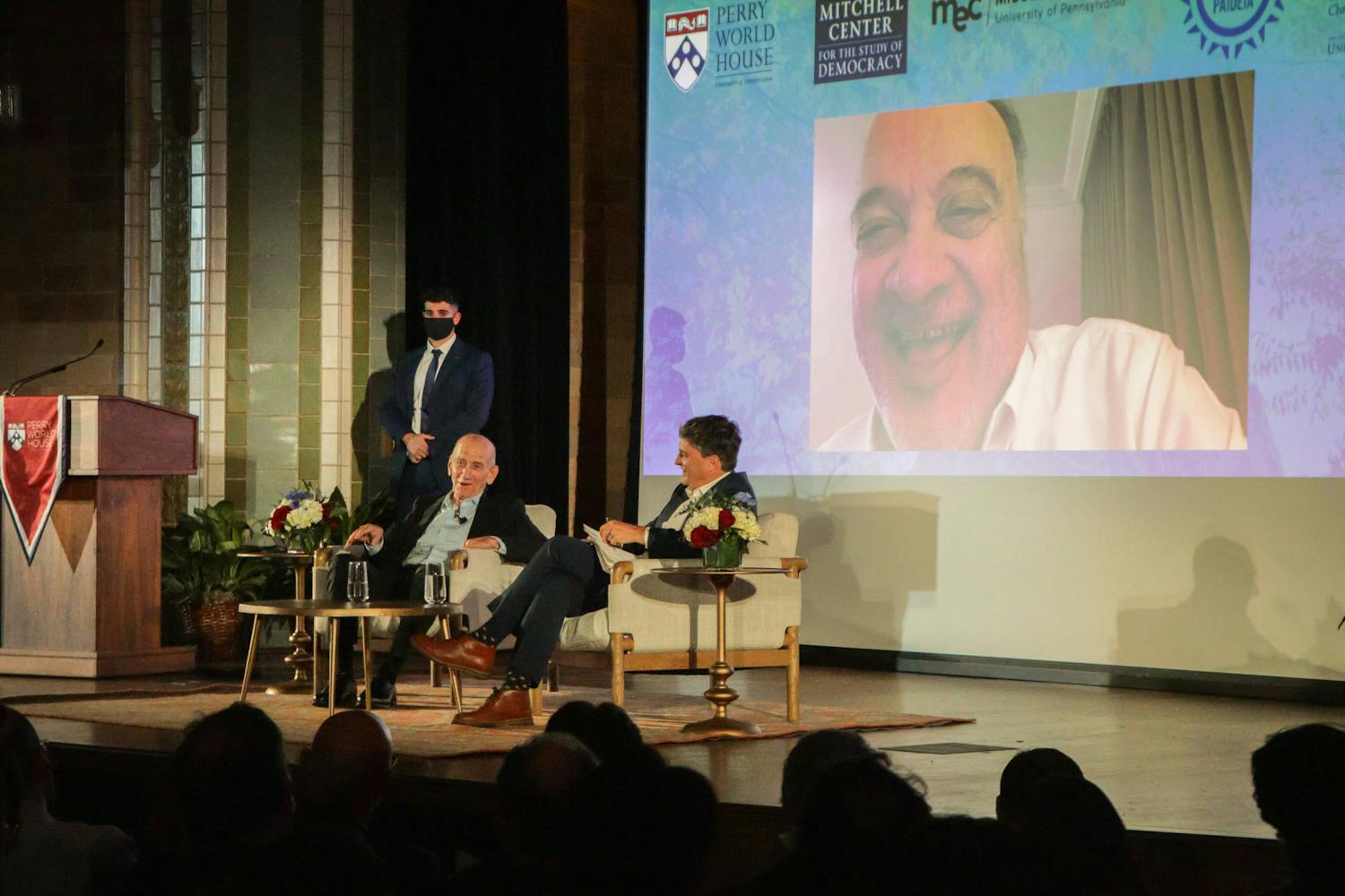 Former Israeli Prime Minister Ehud Olmert and former Palestinian Authority Foreign Minister Nasser Al-Kidwa spoke at the Penn Museum on Oct. 20.