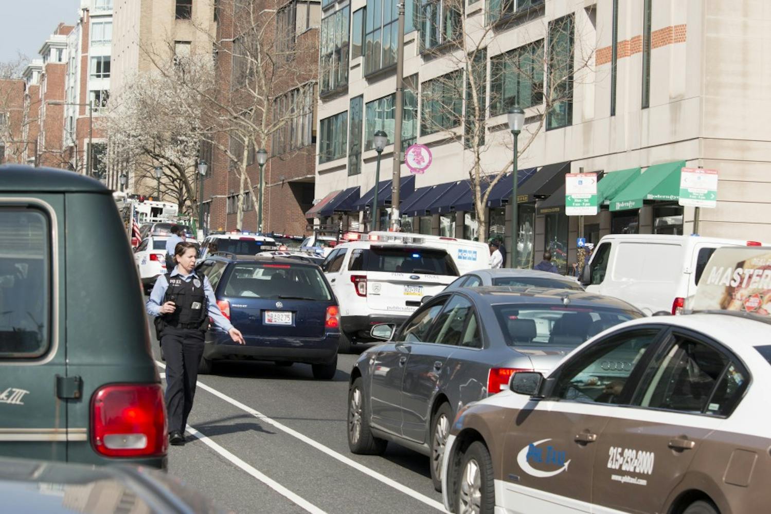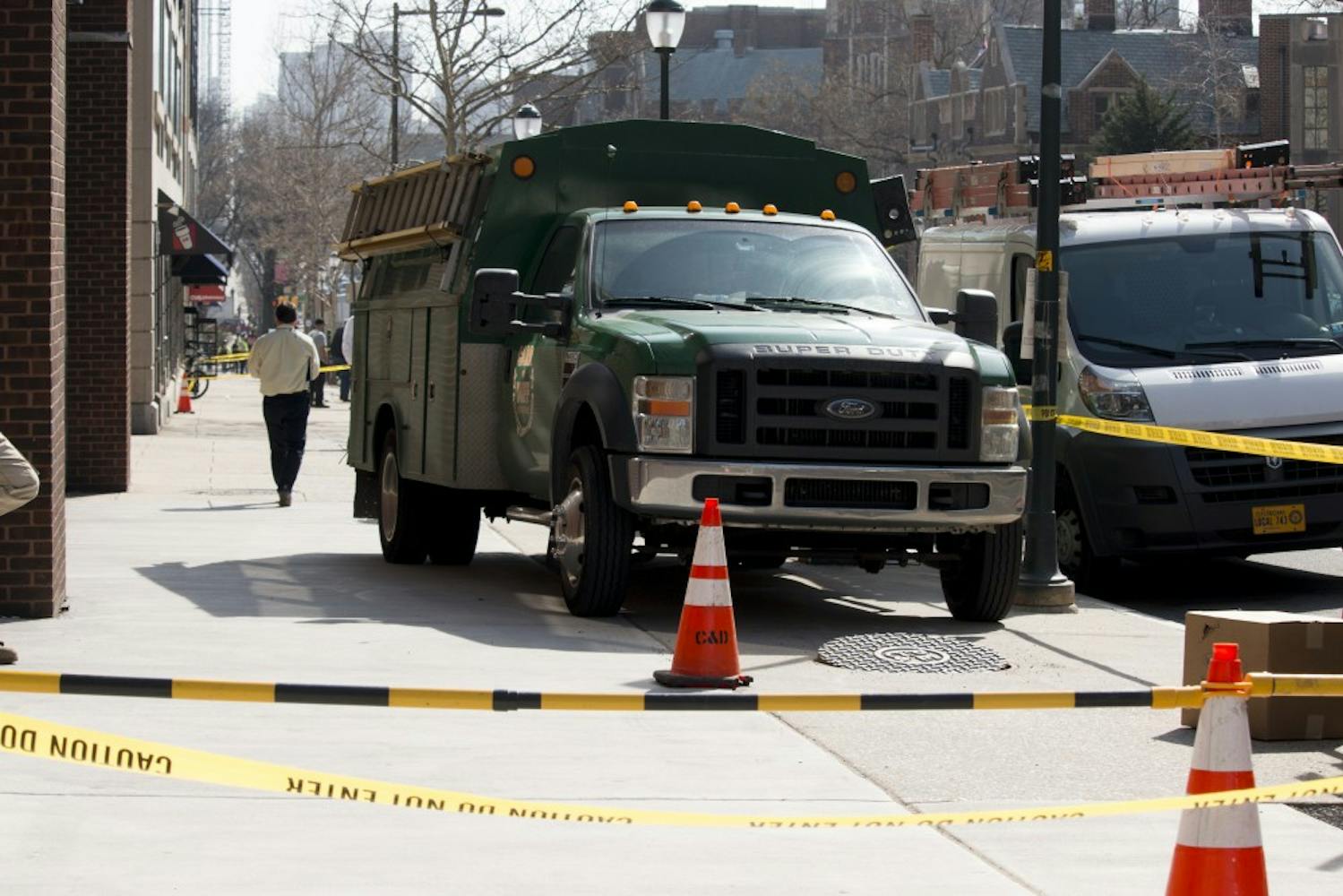 At around 10:07 a.m. this morning, an underground explosion rocked Walnut Street between 34th and 36th streets. It blew two manhole covers off of the ground, with one striking a pedestrian. Here's a timeline of the events. (Photos by Julio Sosa | News Photo Editor)