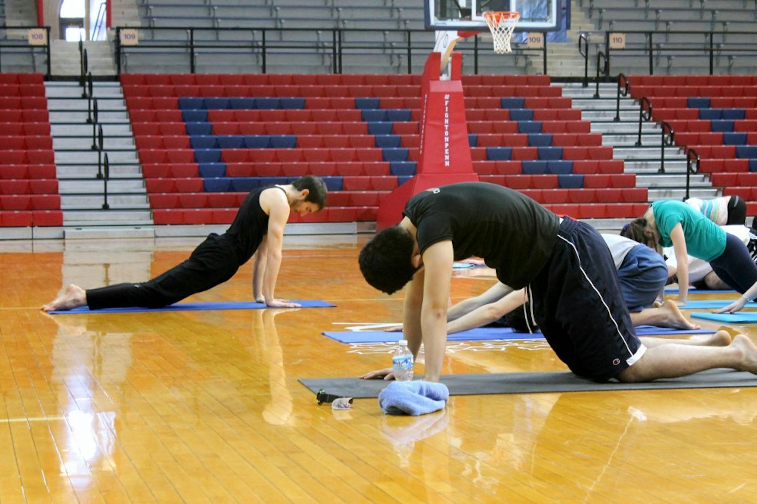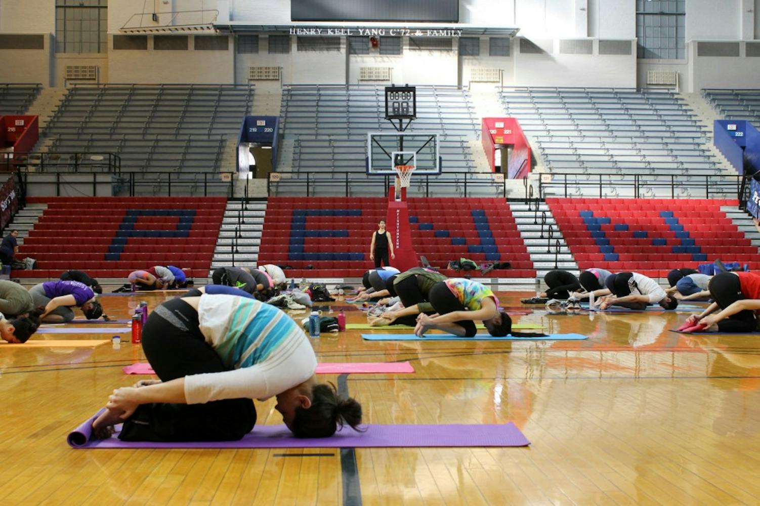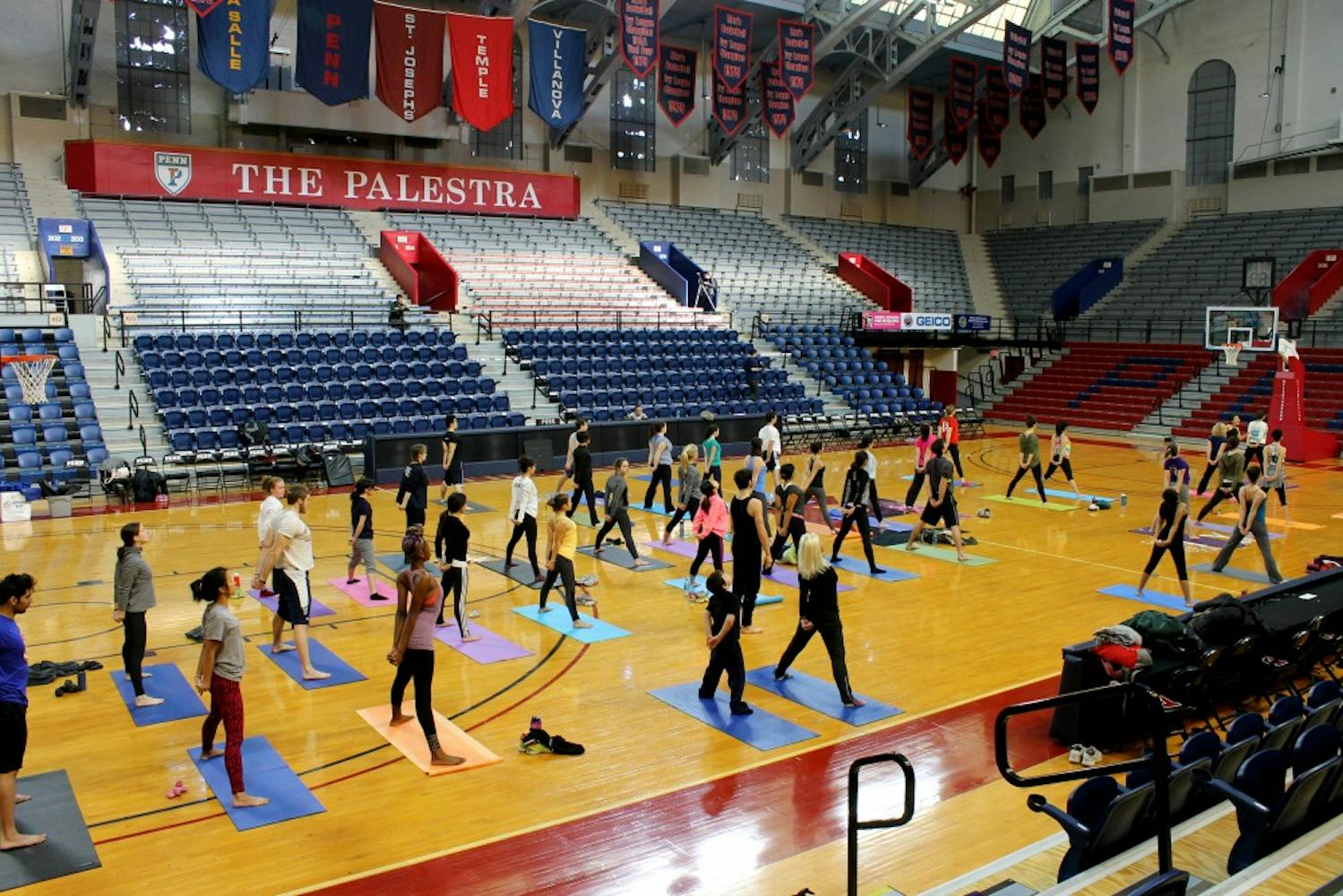Penn's Campus Health, Athletics, Recreation, and the UA teamed up for a yoga and meditation event at the Palestra as part of Penn's "Year of Health." This free event began with two yoga sessions and ended with an hour of meditation.