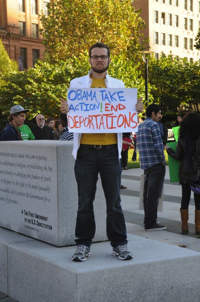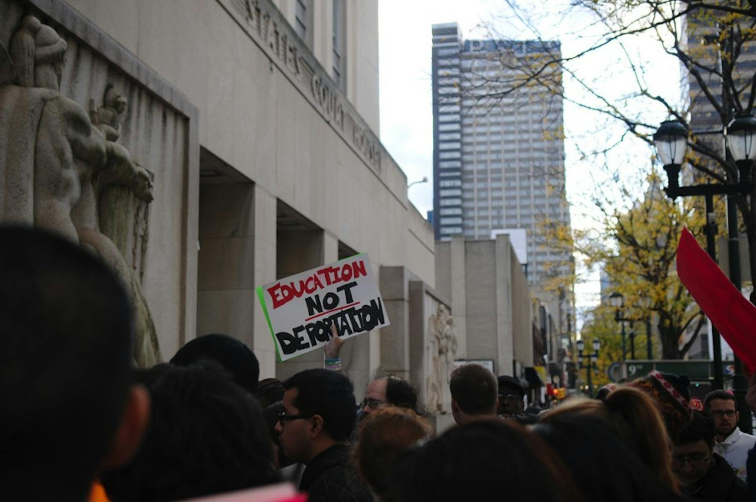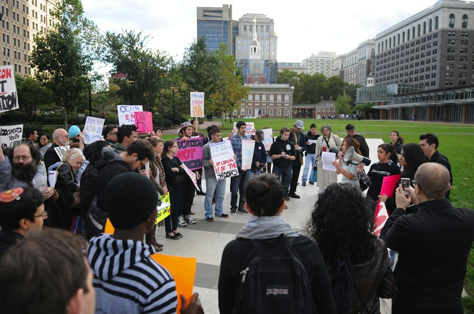 Around 50 people marched from the Liberty Bell to the United States Courthouse Thursday. Related: DREAM Act march draws Penn students, Philadelphia residents