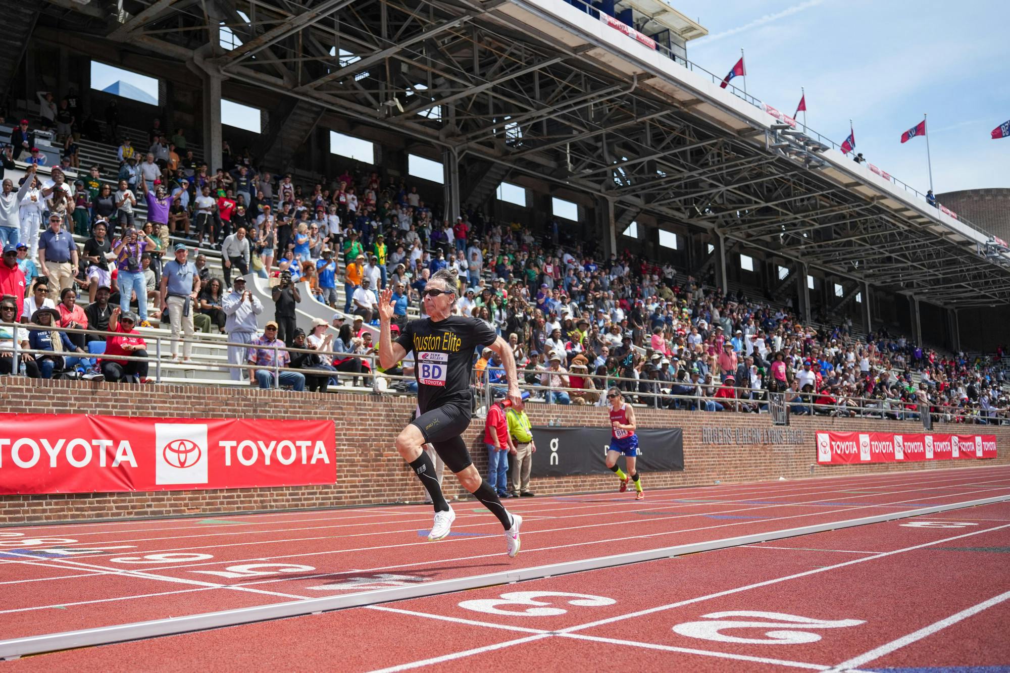 Afterward, the men warming up on the field took position in their respective lanes for the Masters men’s 4x100m 70-and-older relay. With a standing ovation from the crowd, the Houston Elite A claimed victory once more — a repeat victory from last year. Shaving off 3.48 seconds for a 55.96-second finish, this year’s team still featured Michael Kish — a previous viral sensation — and Don Warren while introducing new members David Ortman and Charles Allie. A member of the Houston Elite from 2024, Anthony Baker, competed with the Houston Elite B team this year, which finished in third.