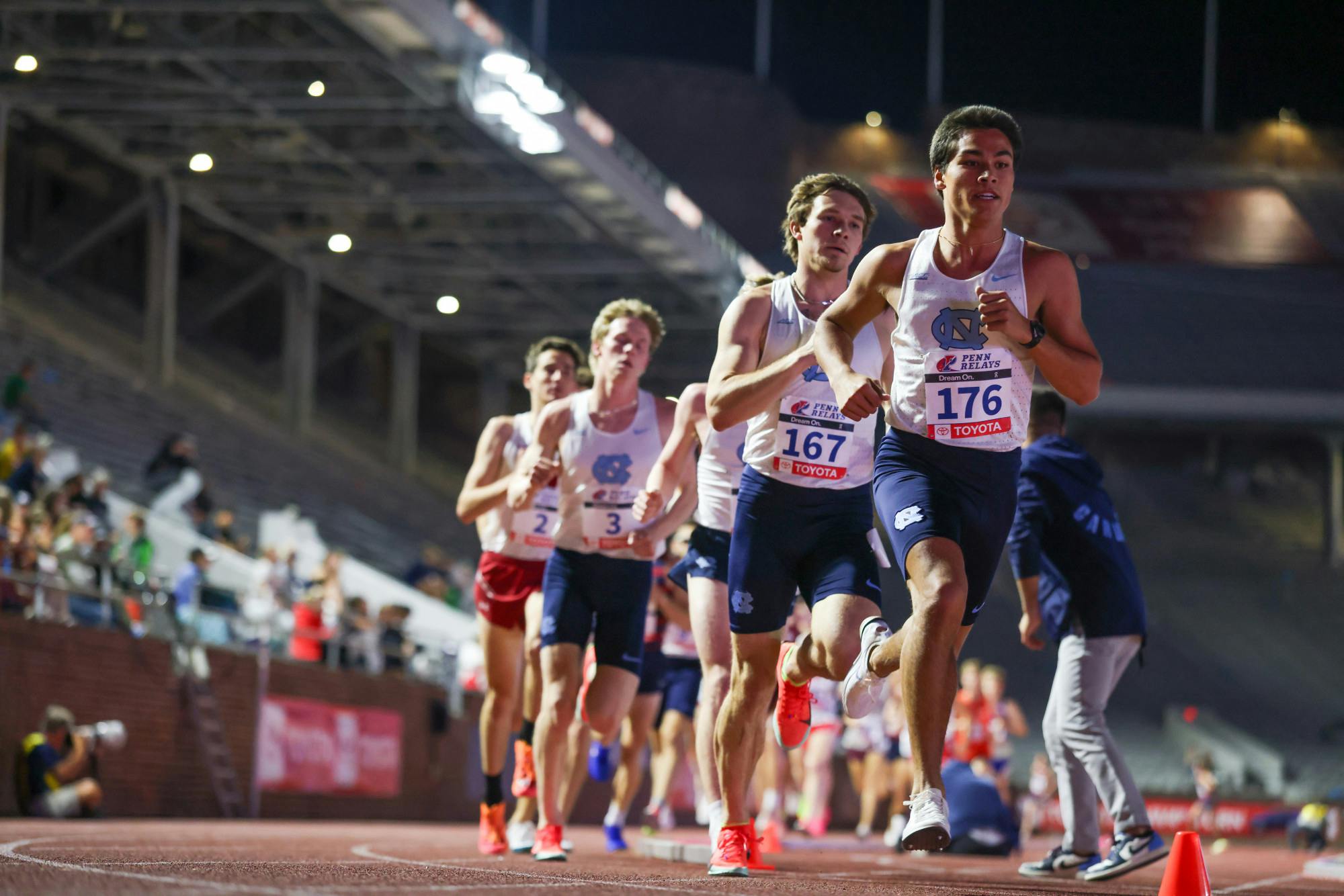 The first heat of the college men’s 5000-meter championship was one for the record books as UNC Chapel Hill runners Parker Wolfe, Ethan Strand, and Colton Sands finished first, second, and third, respectively. Each broke the Penn Relays event record, finishing milliseconds apart at times around 13:31.