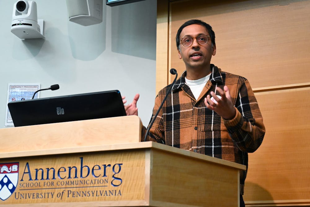 Pennsylvania state Sen. Nikil Saval (D-Philadelphia) speaks at an American Association of University Professors teach-in on Oct. 17. Sydney Curran