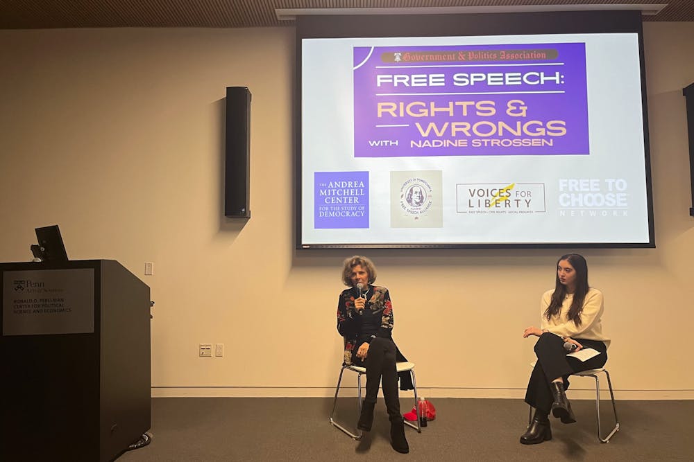 American Civil Liberties Union president Nadine Strossen spoke at the Forum in the Perelman Center for Political Science and Economics on Nov. 6.