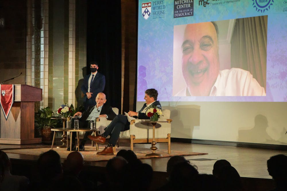 Former Israeli Prime Minister Ehud Olmert and former Palestinian Authority Foreign Minister Nasser Al-Kidwa spoke at the Penn Museum on Oct. 20. Caitlin Tai