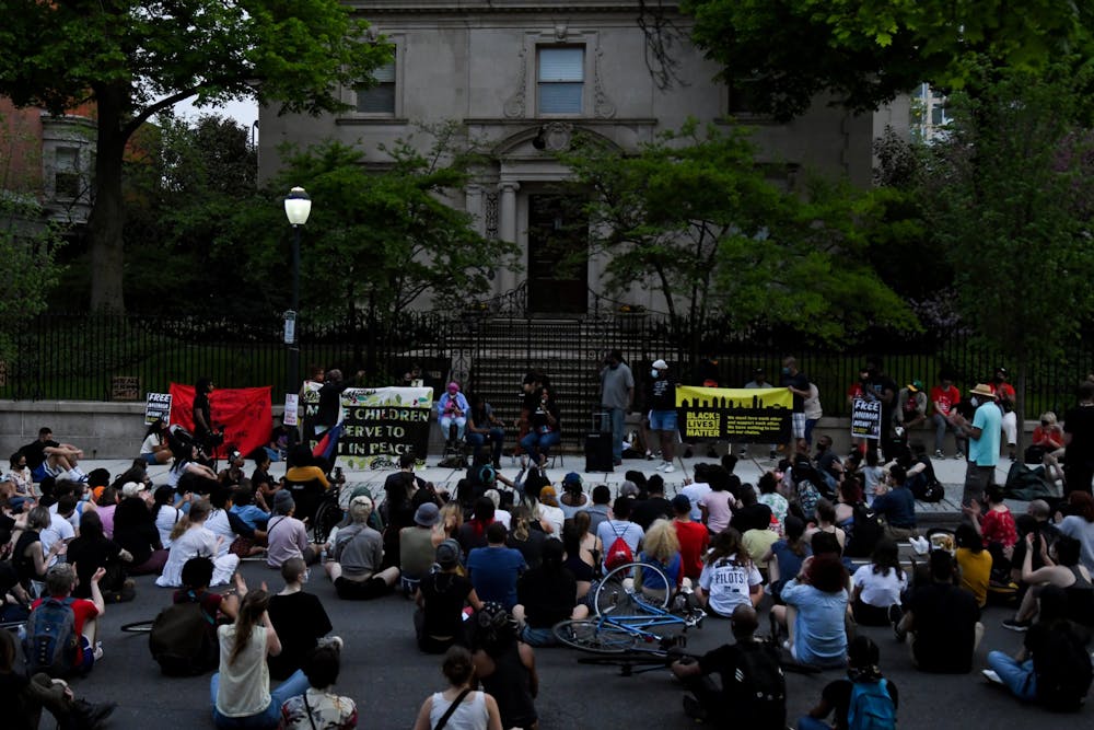 People outside the President's House on April 28, 2021 protesting the MOVE bombing. Sukhmani Kaur
