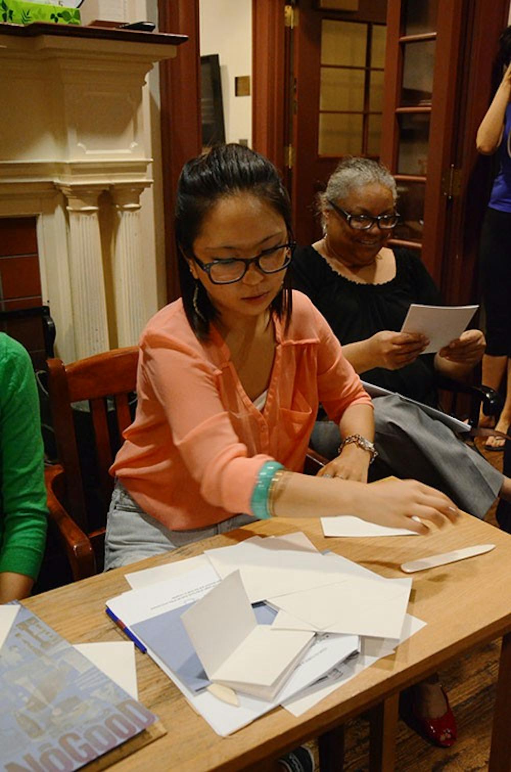 On Wednesday night, the Kelly Writer's House hosted a Bookbinding Workshop lead by Henry Steinberg,a 2013 College graduate. Participants learned the art of bookingbinding from Steinberg and his "No Good Guide to Basic Bookbinding" and left with four handmade books. Christina Prudenico and Christina Prudenico