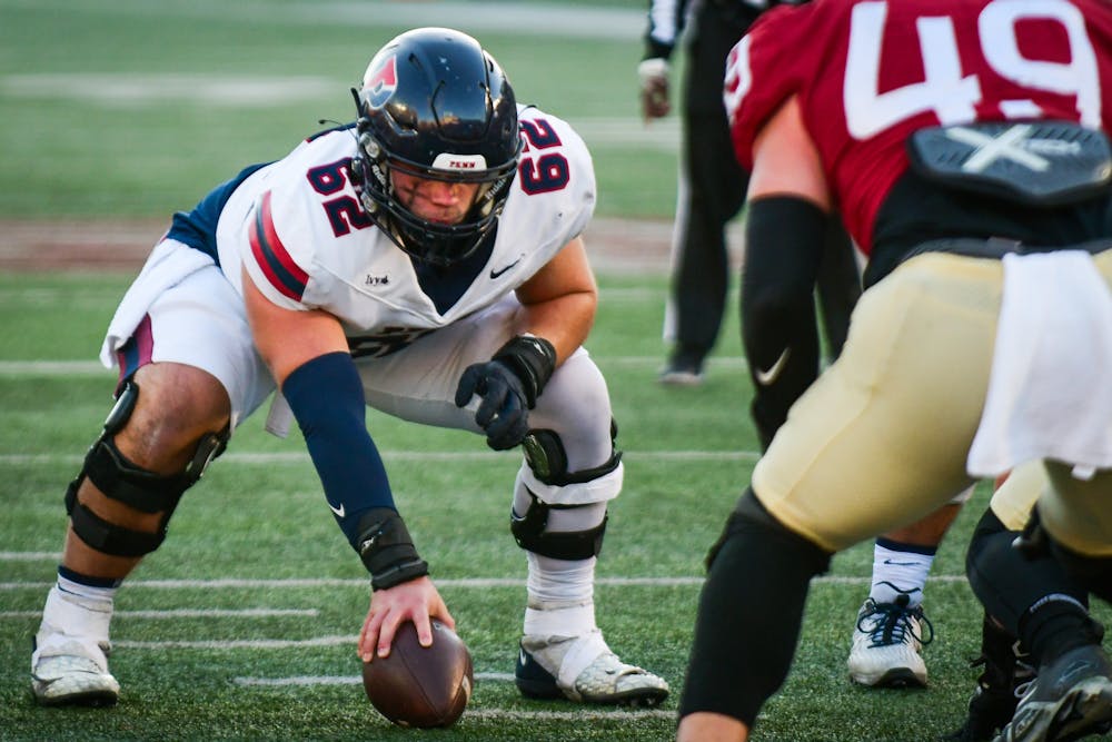 Then-sophomore defensive back Francesco Barone prepares to pass the ball at the start of a play. Weining Ding
