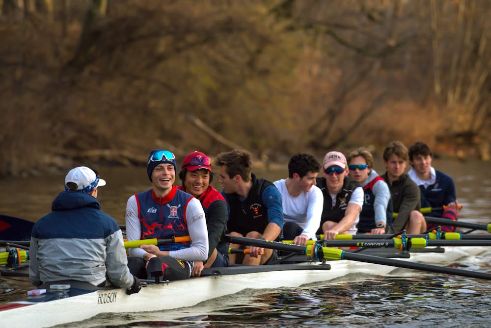 The men’s lightweight rowing team takes a break on the Schuylkill River during practice on Tuesday morning. Dylan Tiu