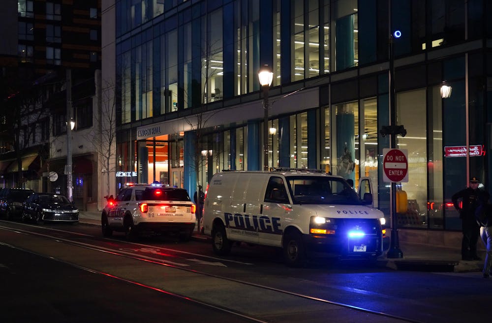Penn Police and Philadelphia Police police officers gather at 40th and Walnut streets on Nov. 22. Matthew Quitoriano