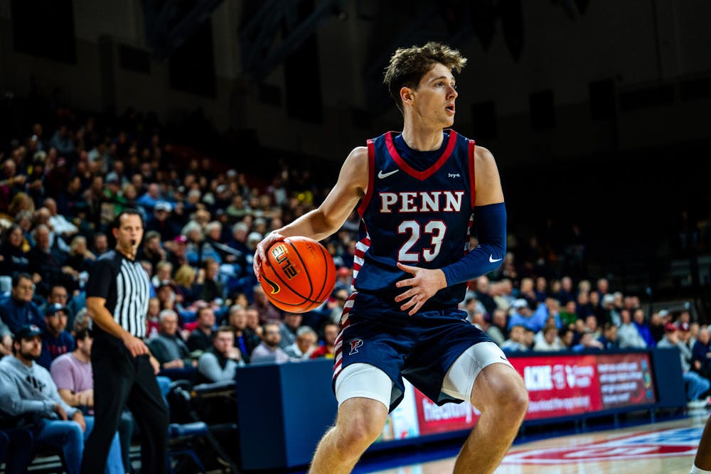 Senior guard/forward Ethan Roberts dribbles during the game against Saint Joseph’s on Nov. 17. Kevin Ren