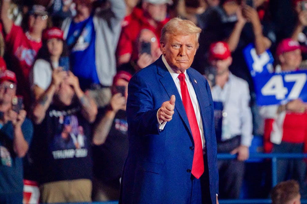 1968 Wharton graduate and President of the United States Donald Trump prepares to speak at a rally on Aug. 17. 2024. Ethan Young
