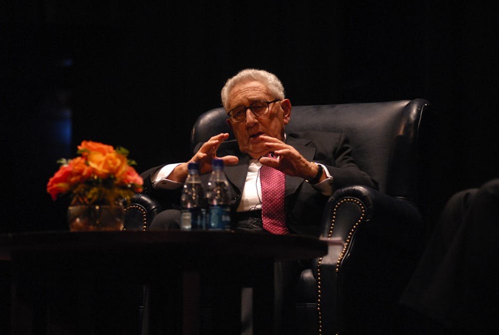 Henry Kissinger shares his knowledge and experience of foreign policy with Penn students during a Spec Connaissance sponsored presentation at the Irvine Auditorium. Matt Cianfrani and Matt Cianfrani