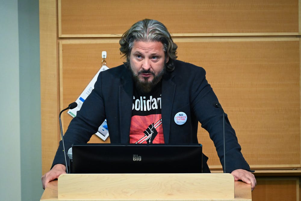 President of the American Association of University Professors Todd Wolfson speaks at the AAUP-Penn teach-in on Oct. 17. Sydney Curran