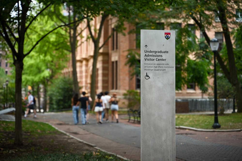 A sign on Penn's campus points towards the admissions center. Chenyao Liu