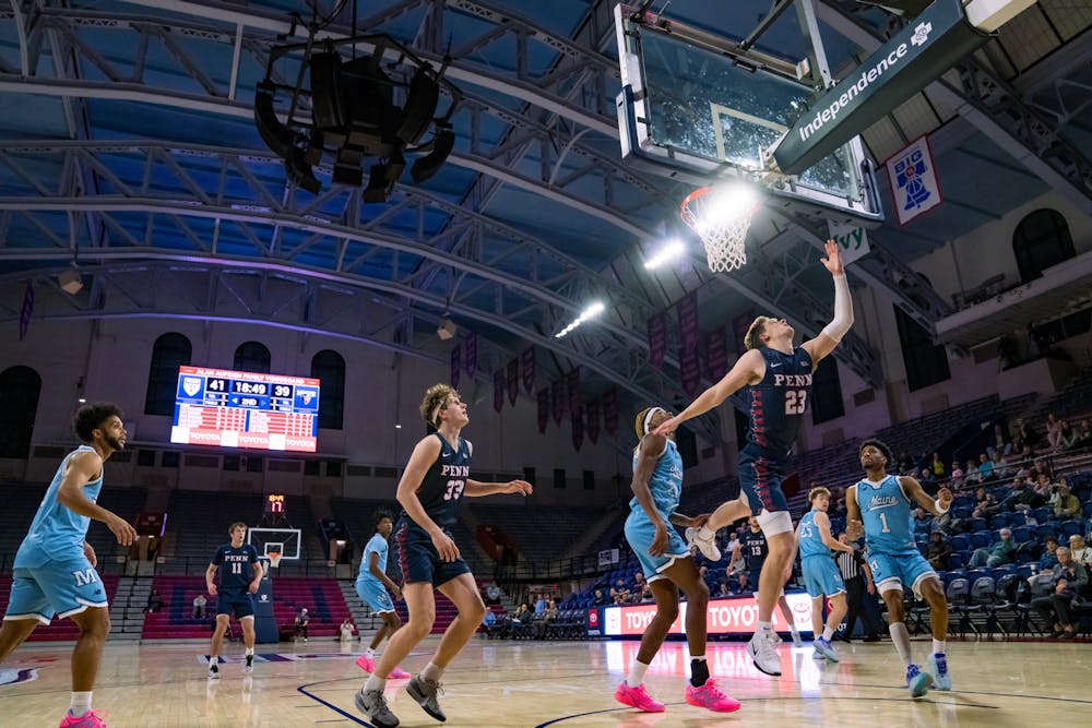 No. 23 Ethan Robert’s shooting a layup against Maine on Nov. 30. Jackson Ford