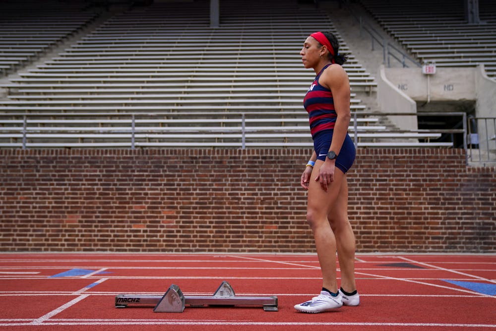 Isabella Whittaker preparing to compete in the Penn Challenge track event in March 2021. Chase Sutton