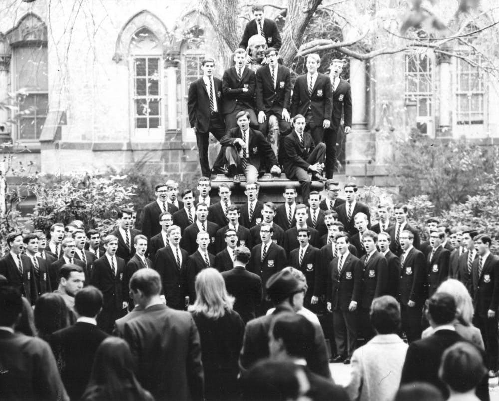 Members of the Penn Glee Club perform during parent’s weekend in 1967. This weekend, the Glee Club will put on its annual spring show and host a gala to honor the group’s 150th anniversary. About 150 Glee Club alumni are expected to attend the festivities. Courtesy of Glee Club