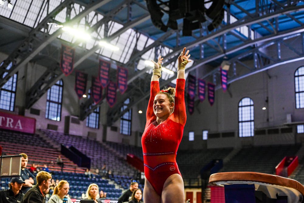 Then-sophomore Marigold Garrett competes in the Red v Blue intrasquad meet on Dec. 3, 2023. Weining Ding
